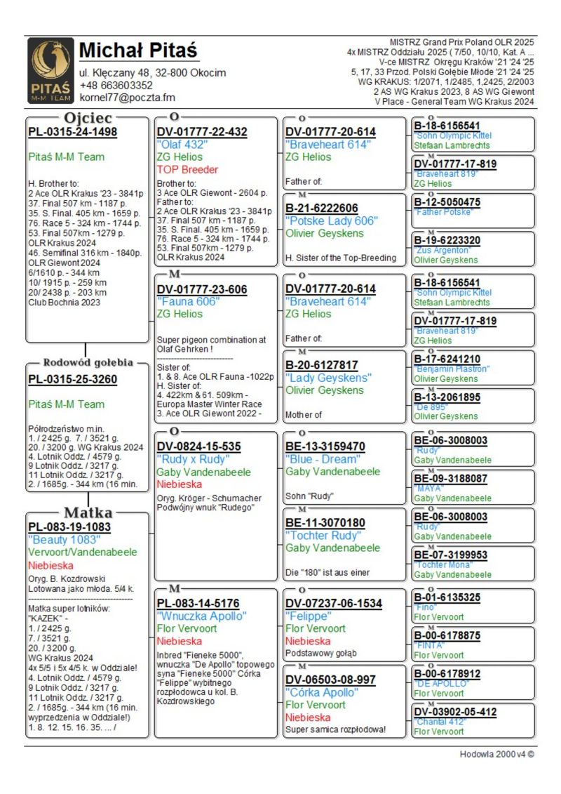 PL-0315-25-3260 - Pitaś M-M Team - wnuk "Olaf 432" ZG Helios - Półbrat 4. 9. 11. Lotnik Oddziału ! 1. 7. 20. WG Krakus