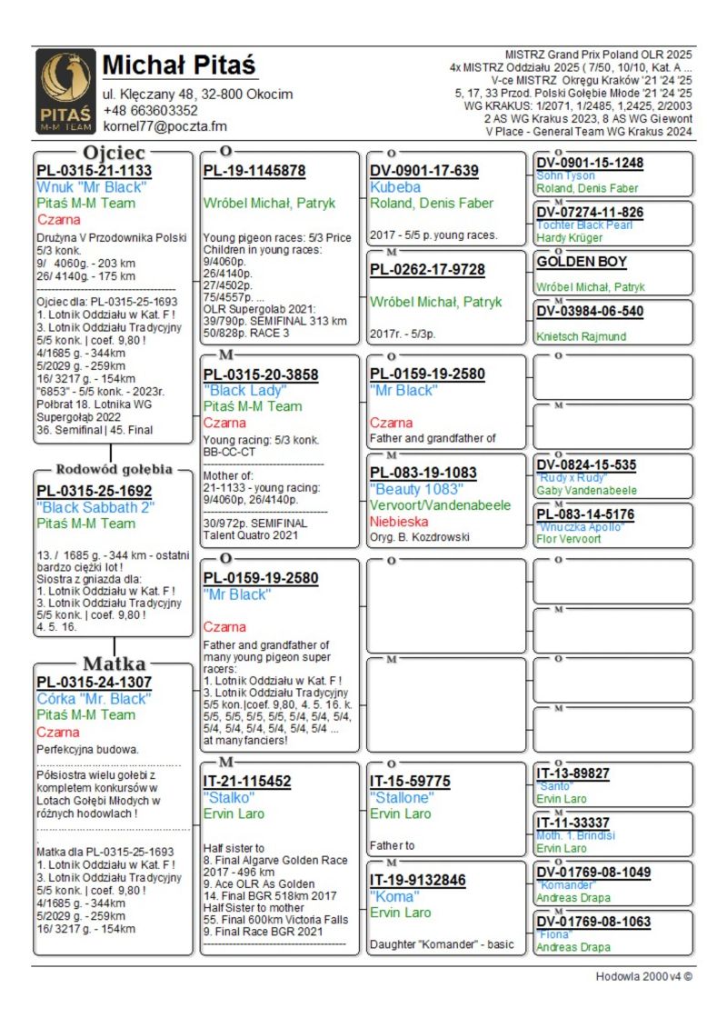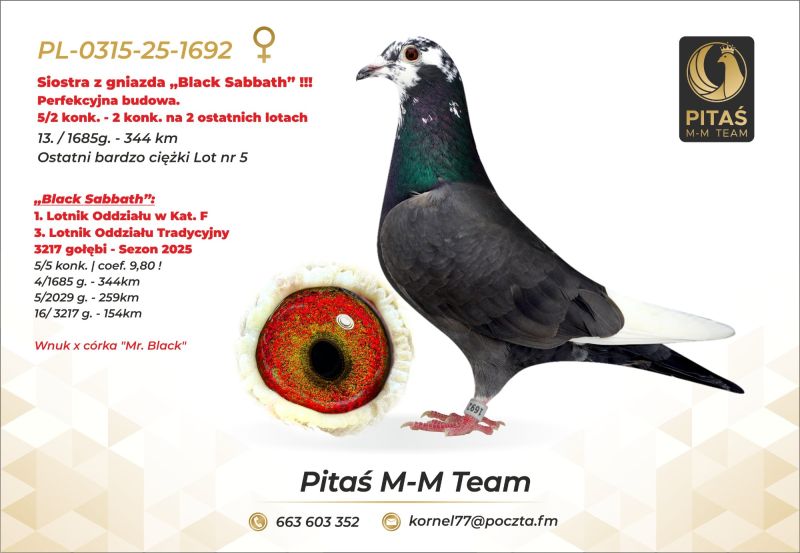 PL-0315-25-1692 - Pitaś M-M Team - Czarna -Siostra z gniazda "Black Sabatth"- 1 i 3 As Oddz. 5/5k. i 9,80 coef. Kat. F !