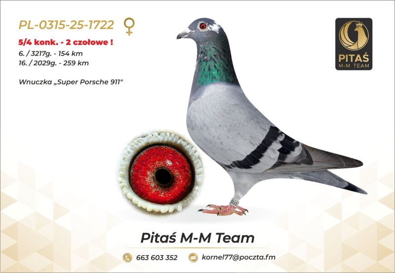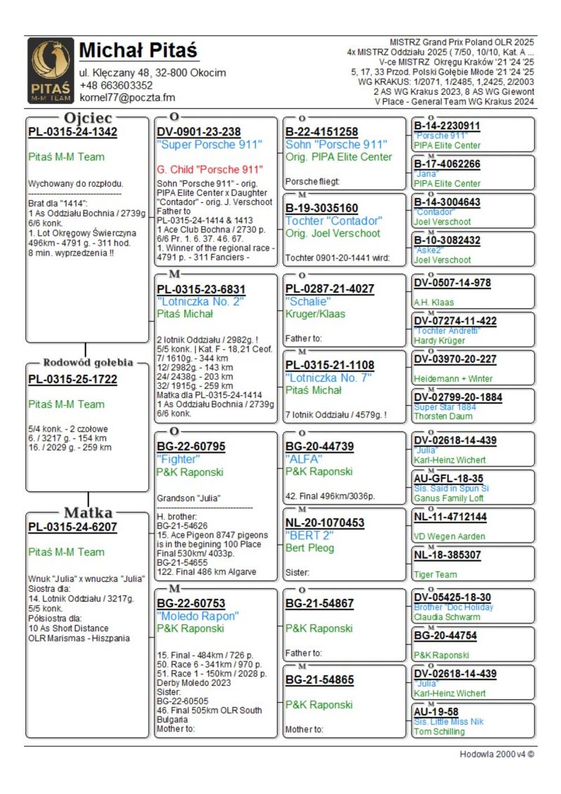 Na naszych aukcjach można znaleźć gołębie młode po pełnym programie lotowym z drużyny która zdobyła 4 Tytuły Mistrza Oddziału Bochnia 2025, II V-ce Mistrza Okręgu Kraków, 33 Przodownika Polski. Druga część aukcji to gołębie wychowane do rozpłodu, głównie z przeznaczeniem pod Wspólne Gołębniki, pochodzą z naszych najlepszych gołębi rozpłodowych, dzięki którym zdobyliśmy w tym roku tytuł Mistrza Grand Prix Poland Wspólnych Gołębników. W razie pytań proszę o kontakt pod nr tel. 663603352. Możliwa wysyłka (160 zł - paczka do 3 gołębi) lub odbiór na targach w Katowicach.