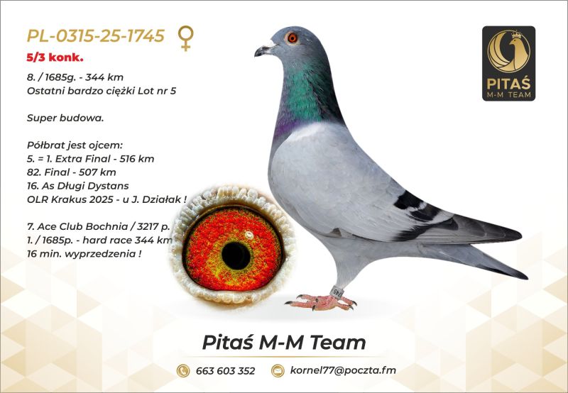 PL-0315-25-1776 - Pitaś M-M Team - 5/3k. 50% Raponski - Półbrat jest ojcem 5. Supercup i 16 As Long Dist. WG Krakus 2025