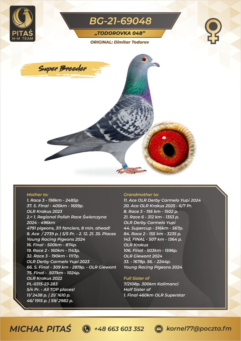 Na naszych aukcjach można znaleźć gołębie młode po pełnym programie lotowym z drużyny która zdobyła 4 Tytuły Mistrza Oddziału Bochnia 2025, II V-ce Mistrza Okręgu Kraków, 33 Przodownika Polski. Druga część aukcji to gołębie wychowane do rozpłodu, głównie z przeznaczeniem pod Wspólne Gołębniki, pochodzą z naszych najlepszych gołębi rozpłodowych, dzięki którym zdobyliśmy w tym roku tytuł Mistrza Grand Prix Poland Wspólnych Gołębników. W razie pytań proszę o kontakt pod nr tel. 663603352. Możliwa wysyłka (160 zł - paczka do 3 gołębi) lub odbiór na targach w Katowicach.