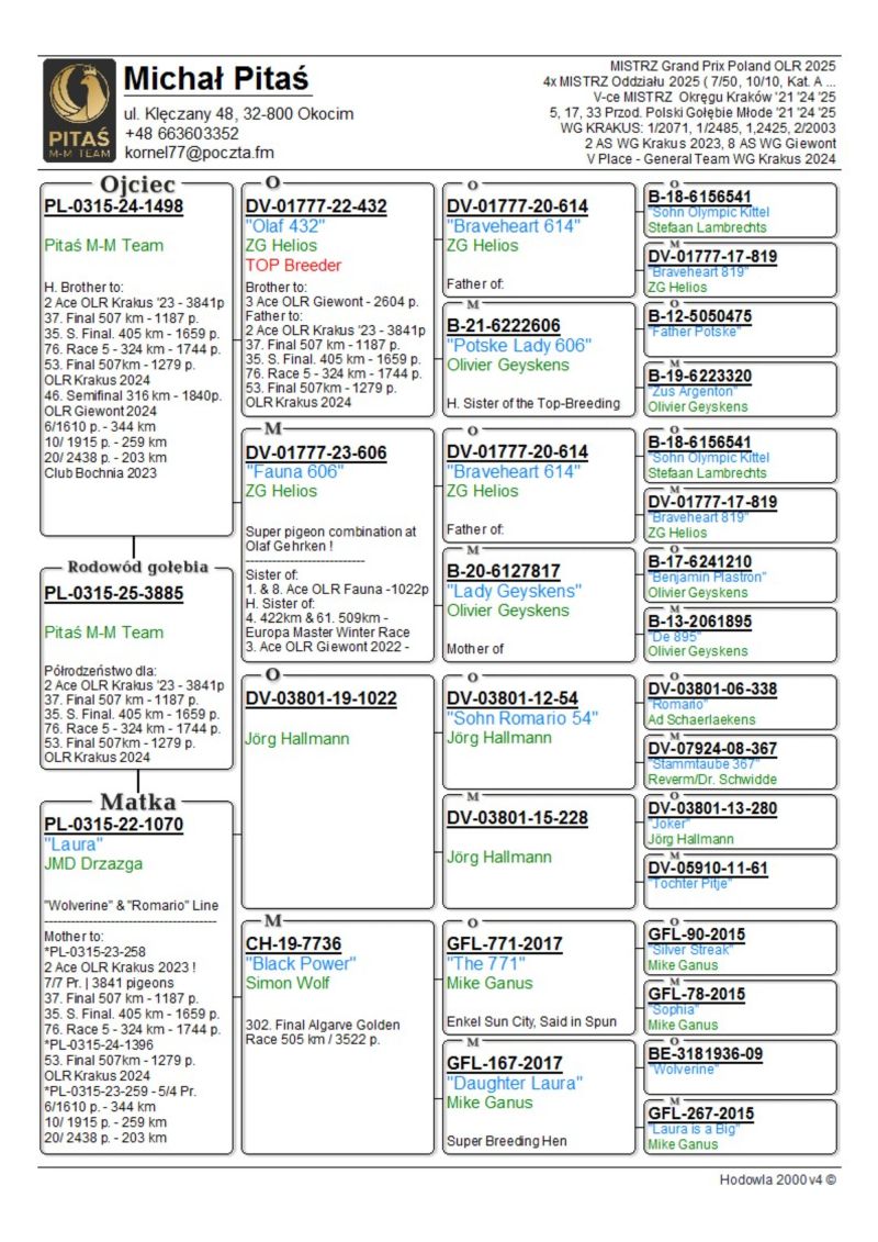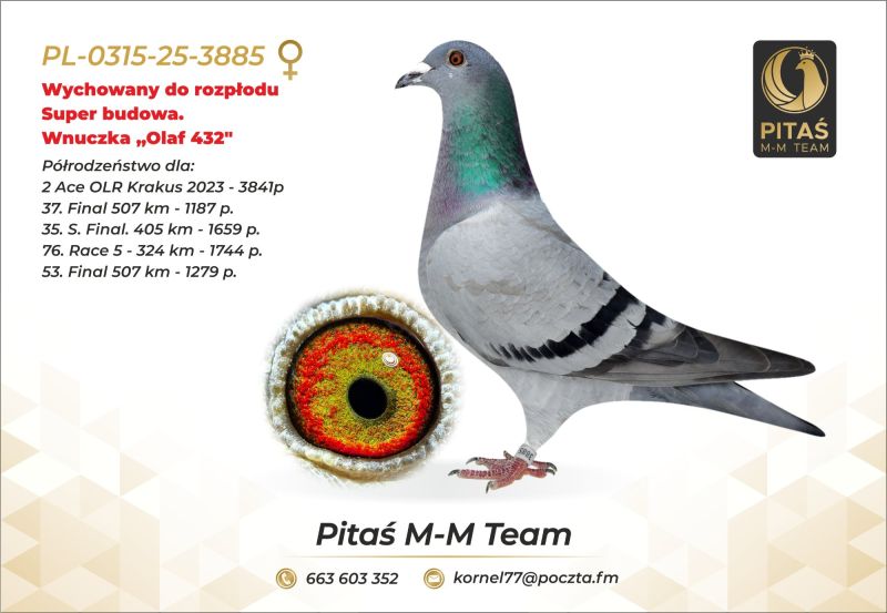 PL-0315-25-3885 - Pitaś M-M Team - Wnuczka "Olaf 432" ZG Helios - półsiostra dla 2 As Krakus, 37 i 57 Finał Krakus !