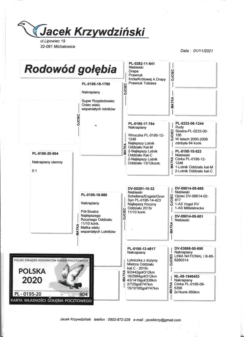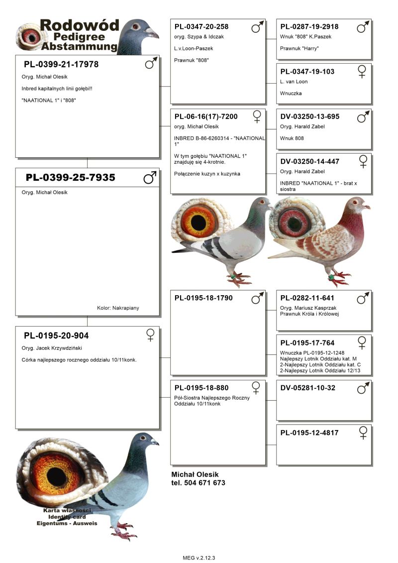Oryginalny gołąb z hodowli Michał Olesik. Szczegóły pochodzenia w rodowodzie. Więcej informacji pod numerem telefonu: 504 671 673 - Transport prywatnym kurierem lub odbiór osobisty.