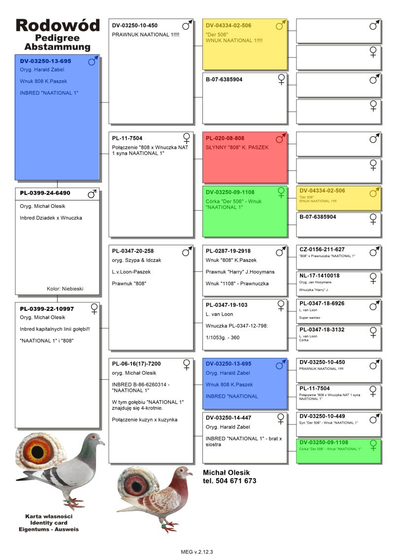 PL-0399-24-6490 - Oryg. Michał Olesik - Inbreed "NAATIONAL 1" i "808" - Wnuczka x Dziadek