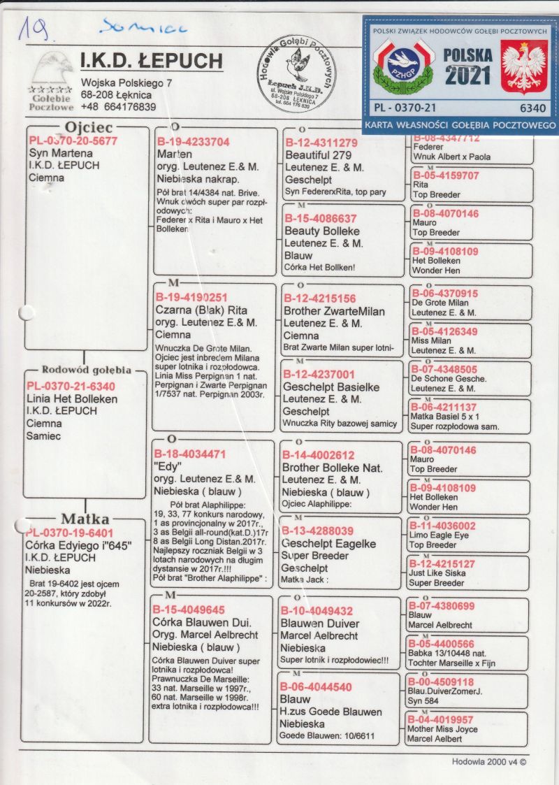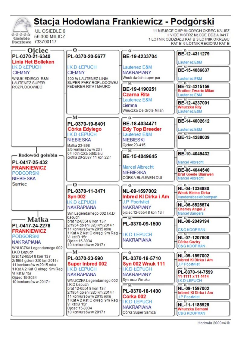 Płeć: samiec Hodowca - rasa: FRANKIEWICZ PODGÓRSKI Zakończenie: 9.12.2025 godz. 19:16
