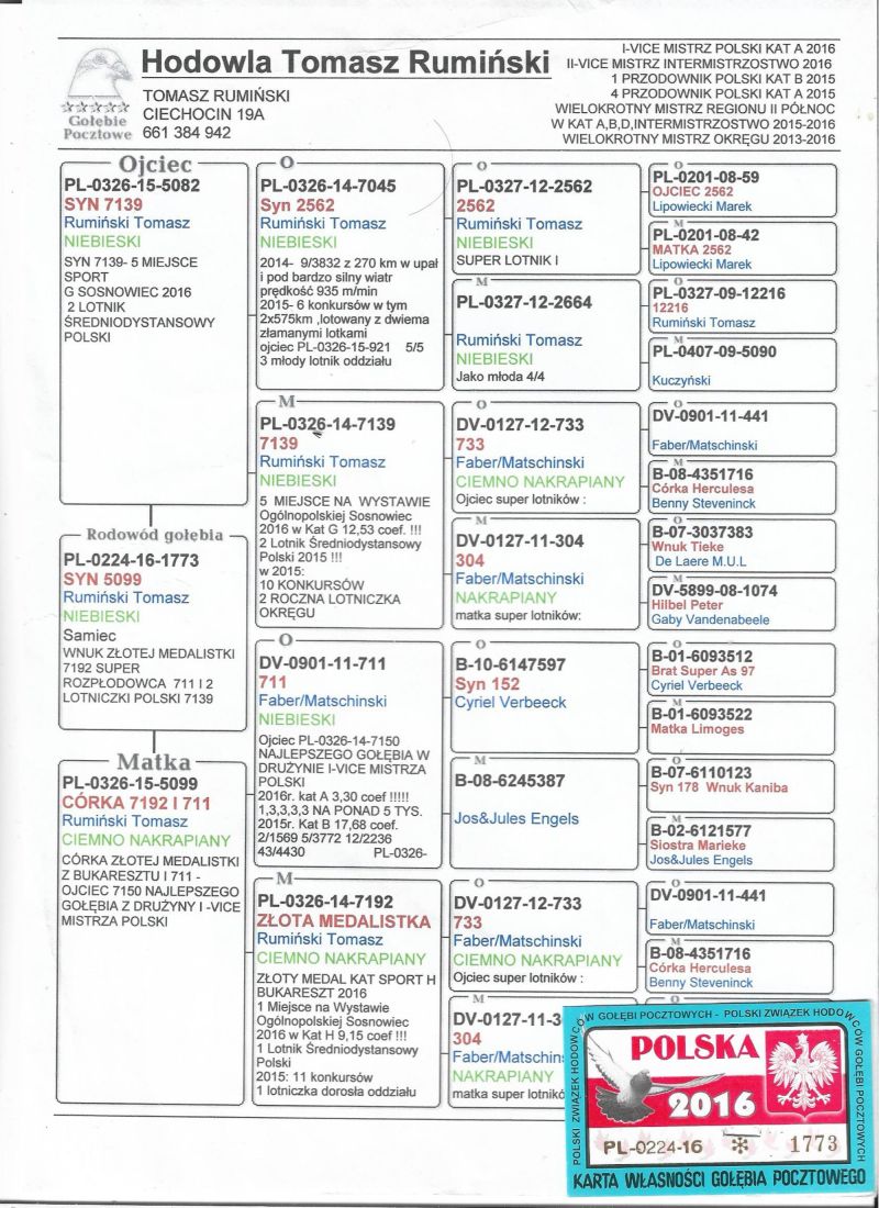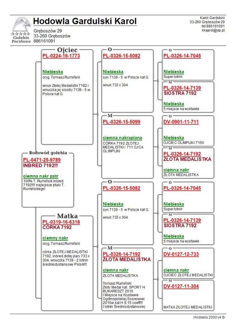 PL-0471-25-9789 - 100% T. Rumiński wnuk, inbred Złotej Medalistki 7192!!!