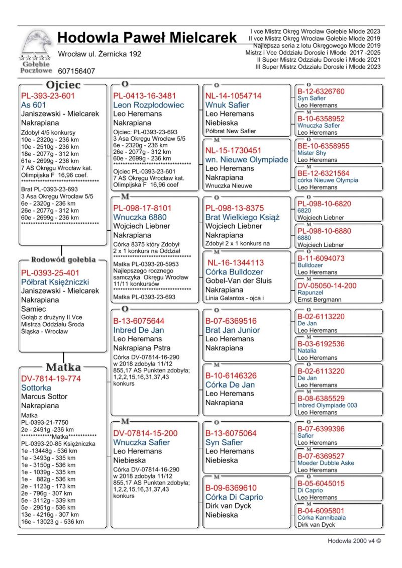 Nasza hodowla została oparta na gołębiach Leo Heremansa, Andreas Drapa, Gaby Vandanabeele, , Wa de Bruijne i przede wszystkim Wojciech Liebner (Gołębie z rodziny Braci Janssen)