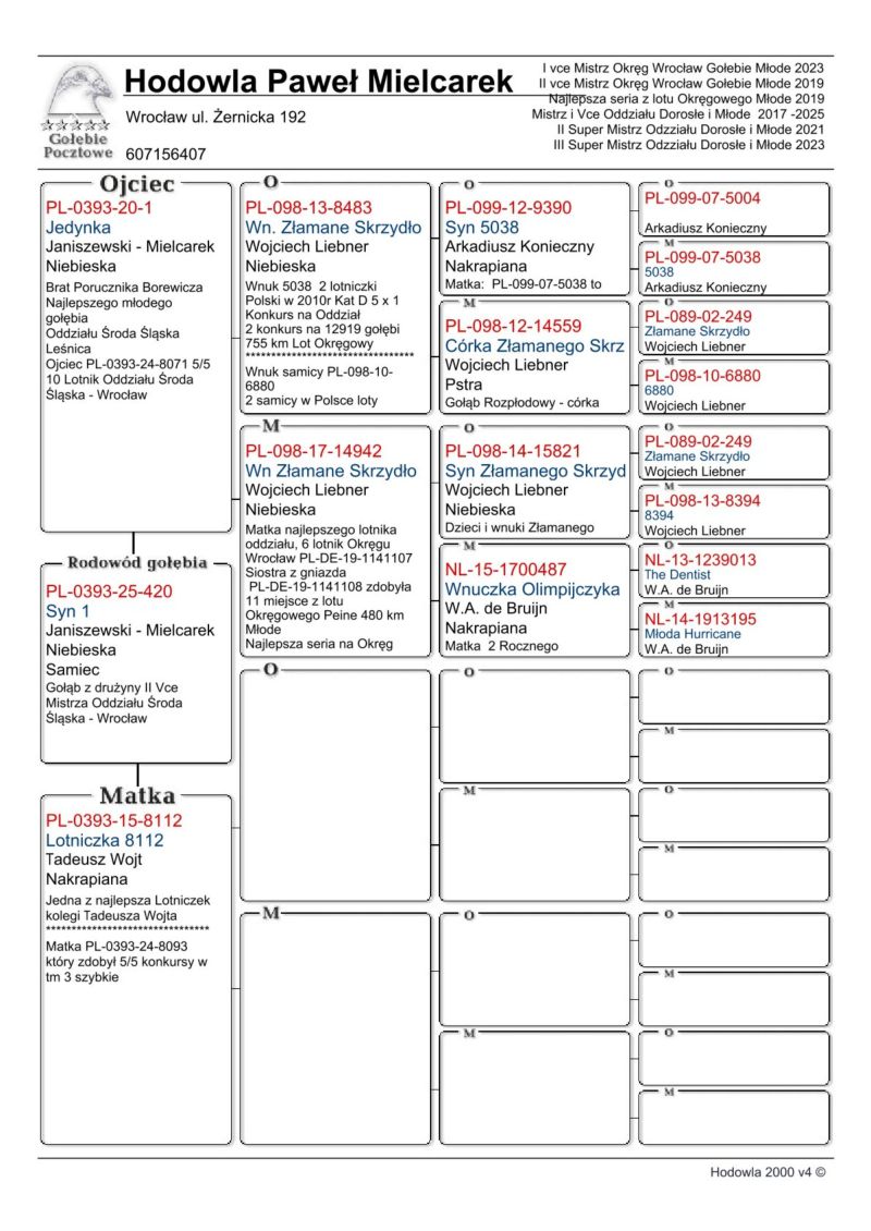 Nasza hodowla została oparta na gołębiach Leo Heremansa, Andreas Drapa, Gaby Vandanabeele, , Wa de Bruijne i przede wszystkim Wojciech Liebner (Gołębie z rodziny Braci Janssen)