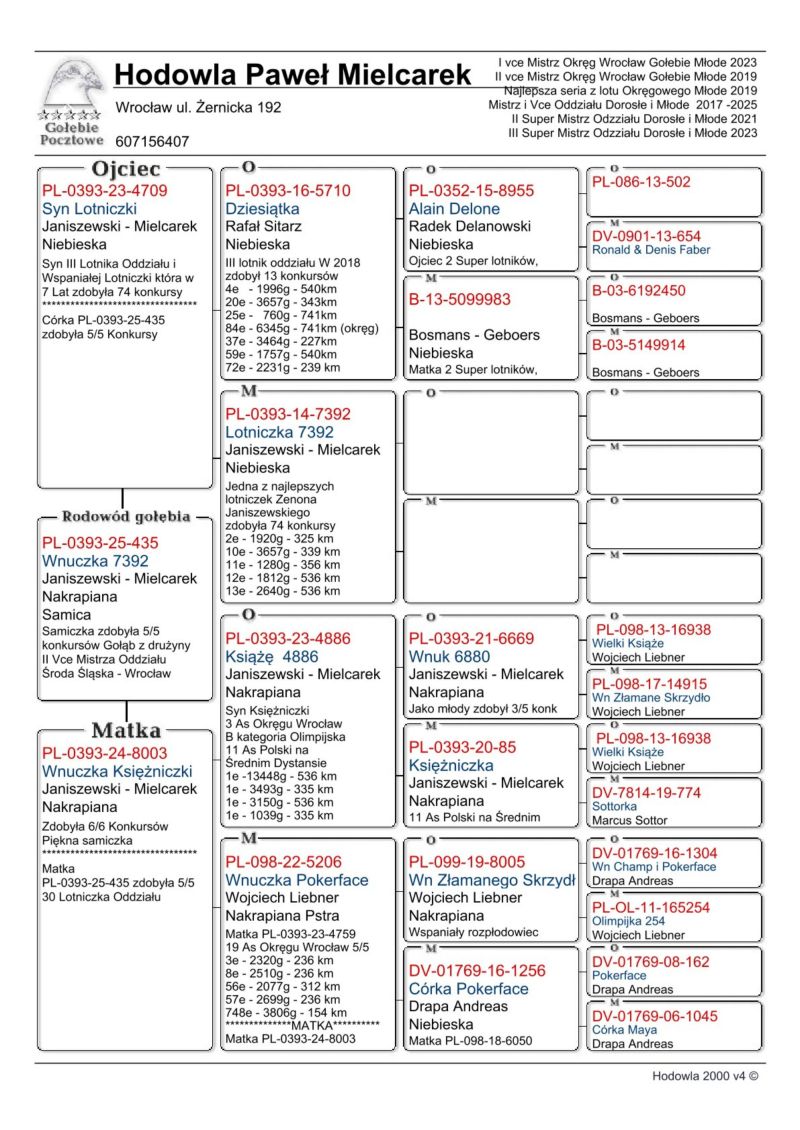 Spółka Janiszewski-Mielcarek powstała w 2017 roku od tamtej pory co roku meldujemy się na podium Oddziału Środa – Śląska Leśnica / Wrocław w różnych kategoriach. W międzyczasie zdobywamy 2 x vce Mistrzostwo Okręgu Wrocław gołębiami młodymi. Nasze gołębie wygrywają loty Oddziałowe oraz Rejonowe. Na listach Najlepszych lotników Okręgu Wrocław pojawiają się Nasze gołębie!
