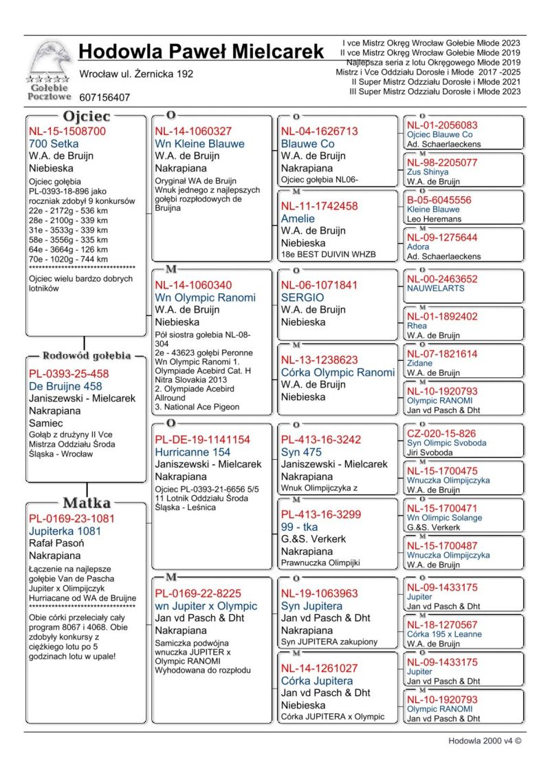 Nasza hodowla została oparta na gołębiach Leo Heremansa, Andreas Drapa, Gaby Vandanabeele, , Wa de Bruijne i przede wszystkim Wojciech Liebner (Gołębie z rodziny Braci Janssen)