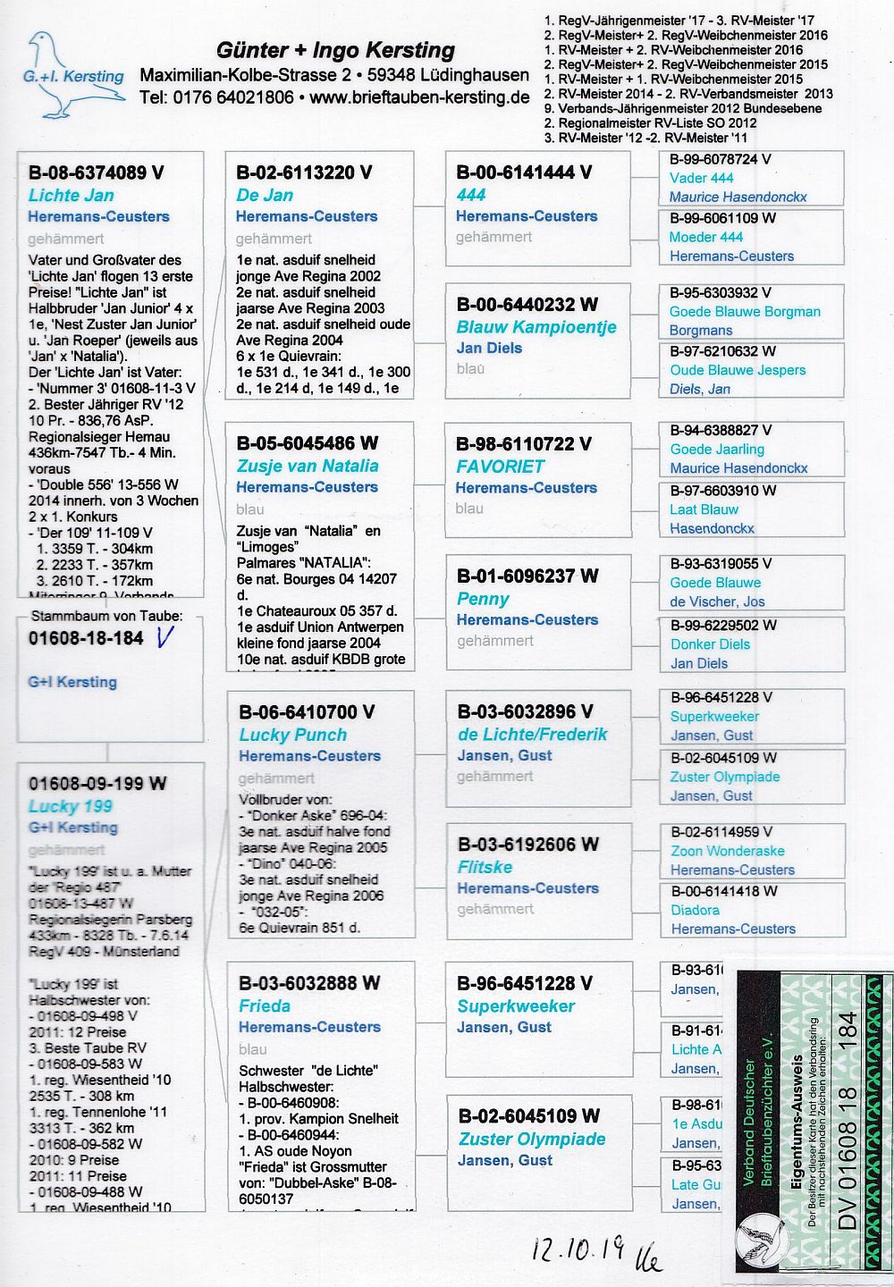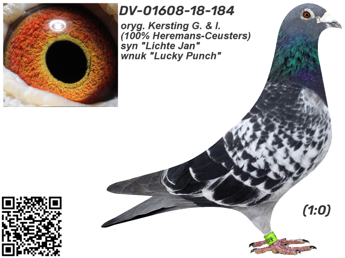 DV-01608-18-184 - oryg. Kersting G. & I. (100% Heremans-Ceusters), syn "Lichte Jan", wnuk "Lucky Punch"