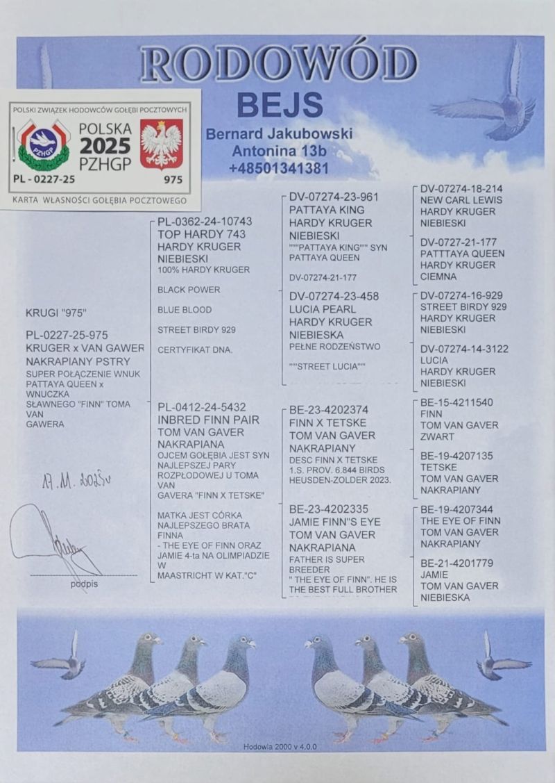 Płeć: młody gołąb Hodowca - rasa: oryg. Bernard Jakubowski Hardy Kruger x Tom Van Gaver Zakończenie: 9.12.2025 godz. 21:06