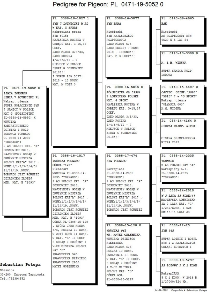 PL-0471-19-5052 - oryg. S. Potępa (100% P. Mędrysa) wnuczka 7 lotniczki Polski, linia 965, Tornado - likwidacja rozpłodu