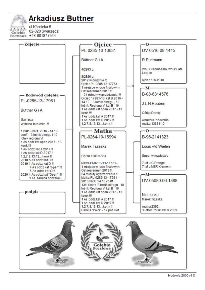 Został też 4 Asem Polski kat krótki dystans 2024 z coeff 17 z groszem z 5 lotów do kat A właśnie dla Kolegi Jacka Orszulika !!! oraz wiele,wiele innych.....od 2017 roku 30x mistrzostwo oddz w różnych kategoriach w tym 2019-2021 3 x z rzędu supermistrzostwo oddziału Poznań, więcej info 601 877 544