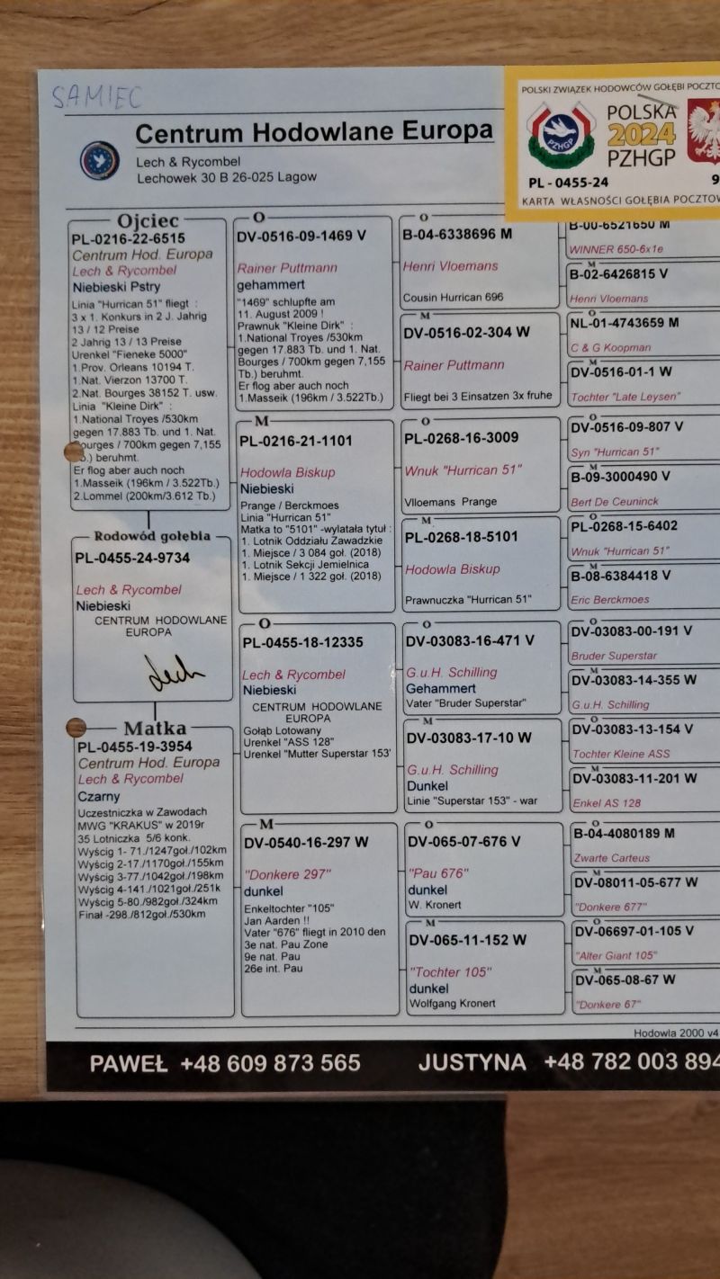 PL-0455-24-9734 oryg. Centrum Hodowlane Europa "Linia Hurican 51" R.Puttmann x "CZARNA" Lech&Ryco. uczestnik MWG "KRAKUS