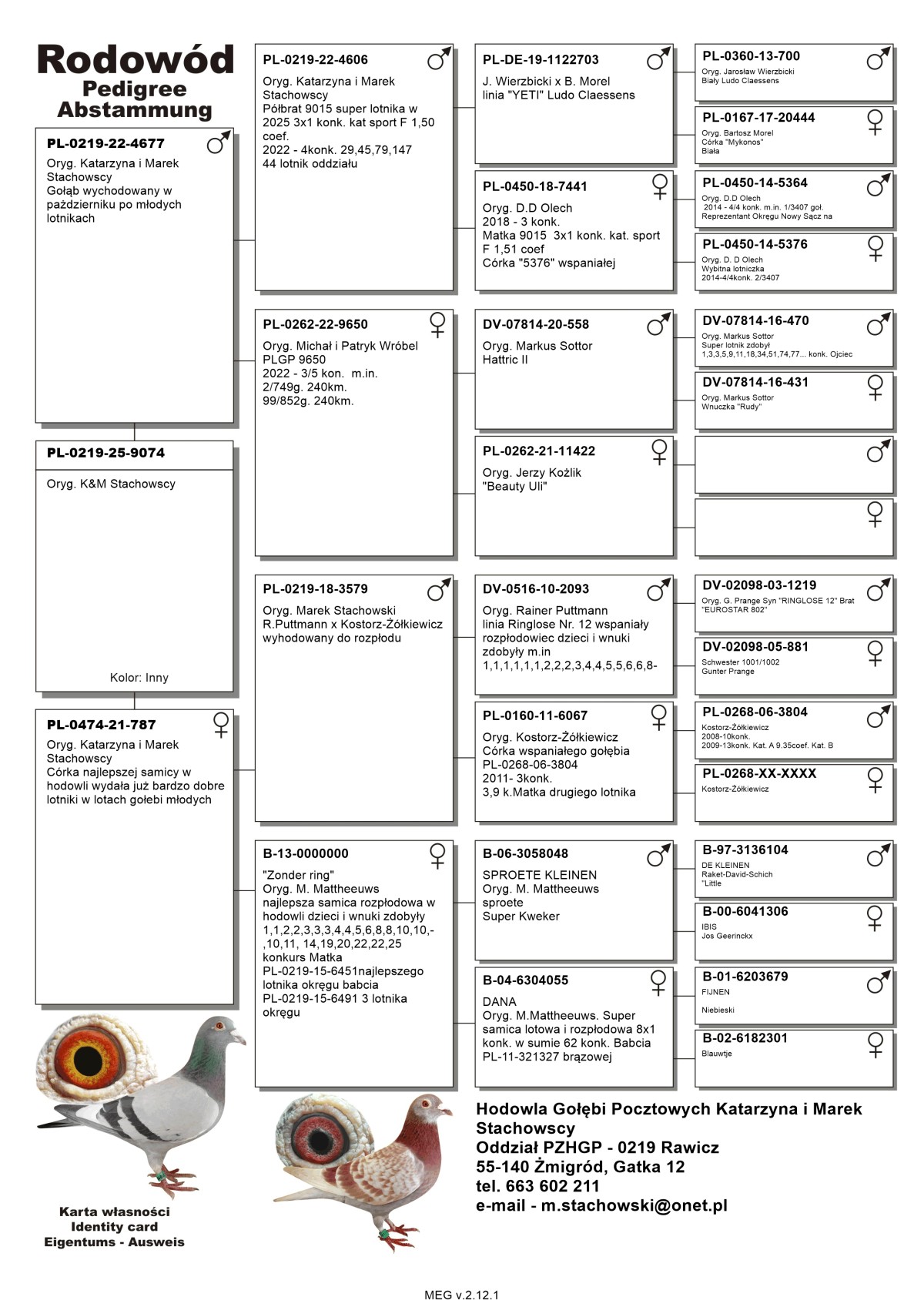 Oryg. K&M Stachowscy Z gołębnika rozpłodowego Katarzyny i Marka Stachowskich - 2 Przodownika Polski w Kat. A - młode. Gołębie sprzedawane z powodu ograniczenia rozpłodu do minimum. Koszt transportu 150 zł po stronie kupującego