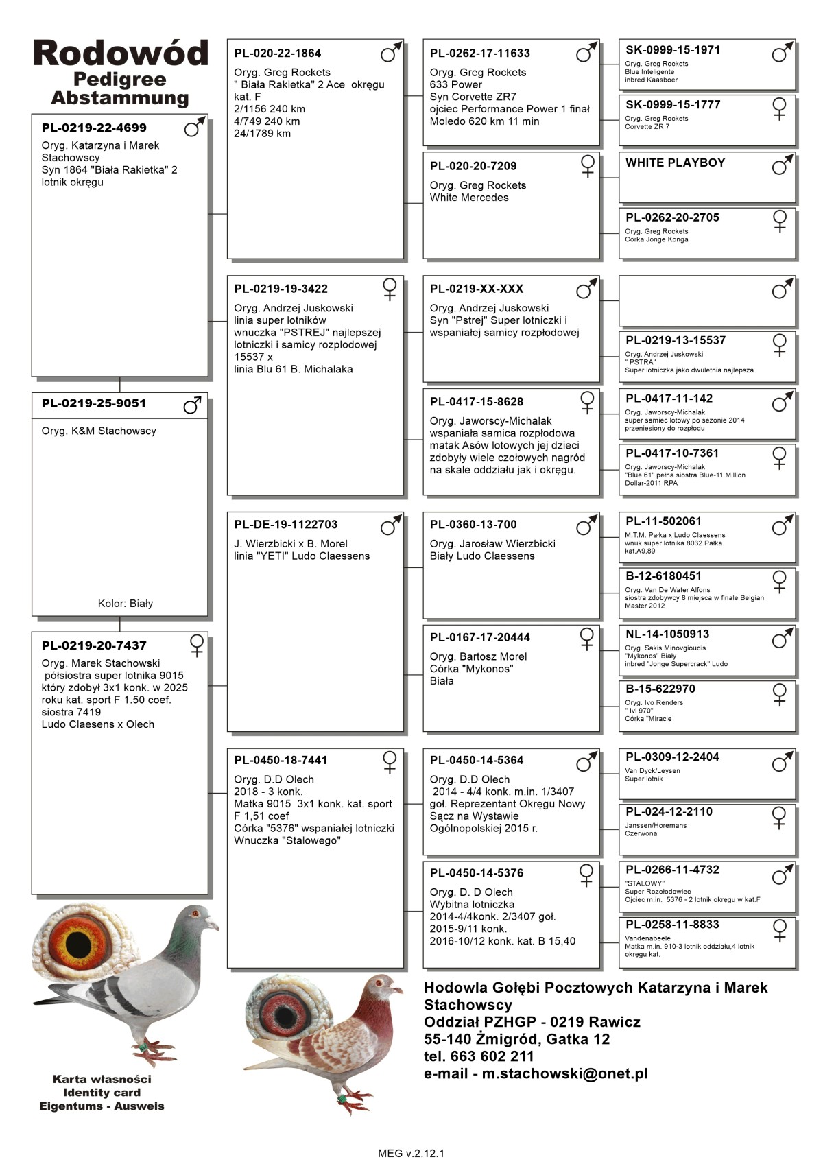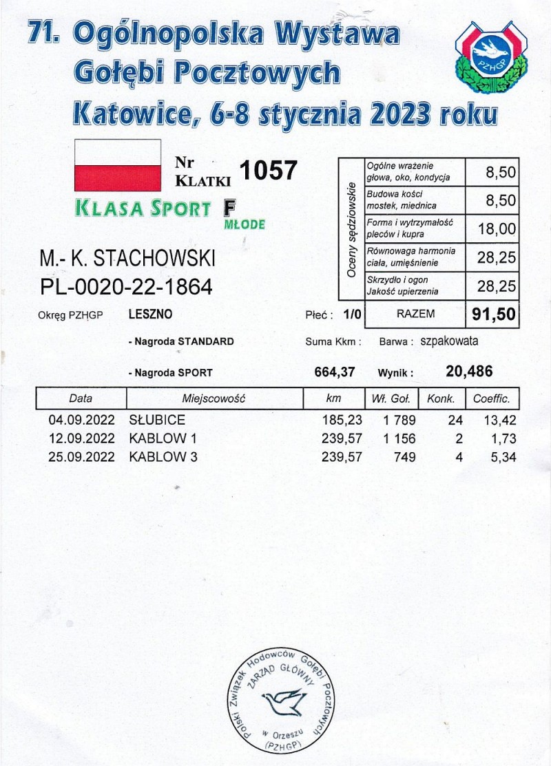 Oryg. K&M Stachowscy z Gołębnika rozpłodowego Katarzyny i Marka Stachowskich - 1 Przodownika Polski w kat. A - młode. Gołębie sprzedawane z powodu ograniczenia rozpłodu do minimum. Koszt transportu 150 zł po stronie kupującego