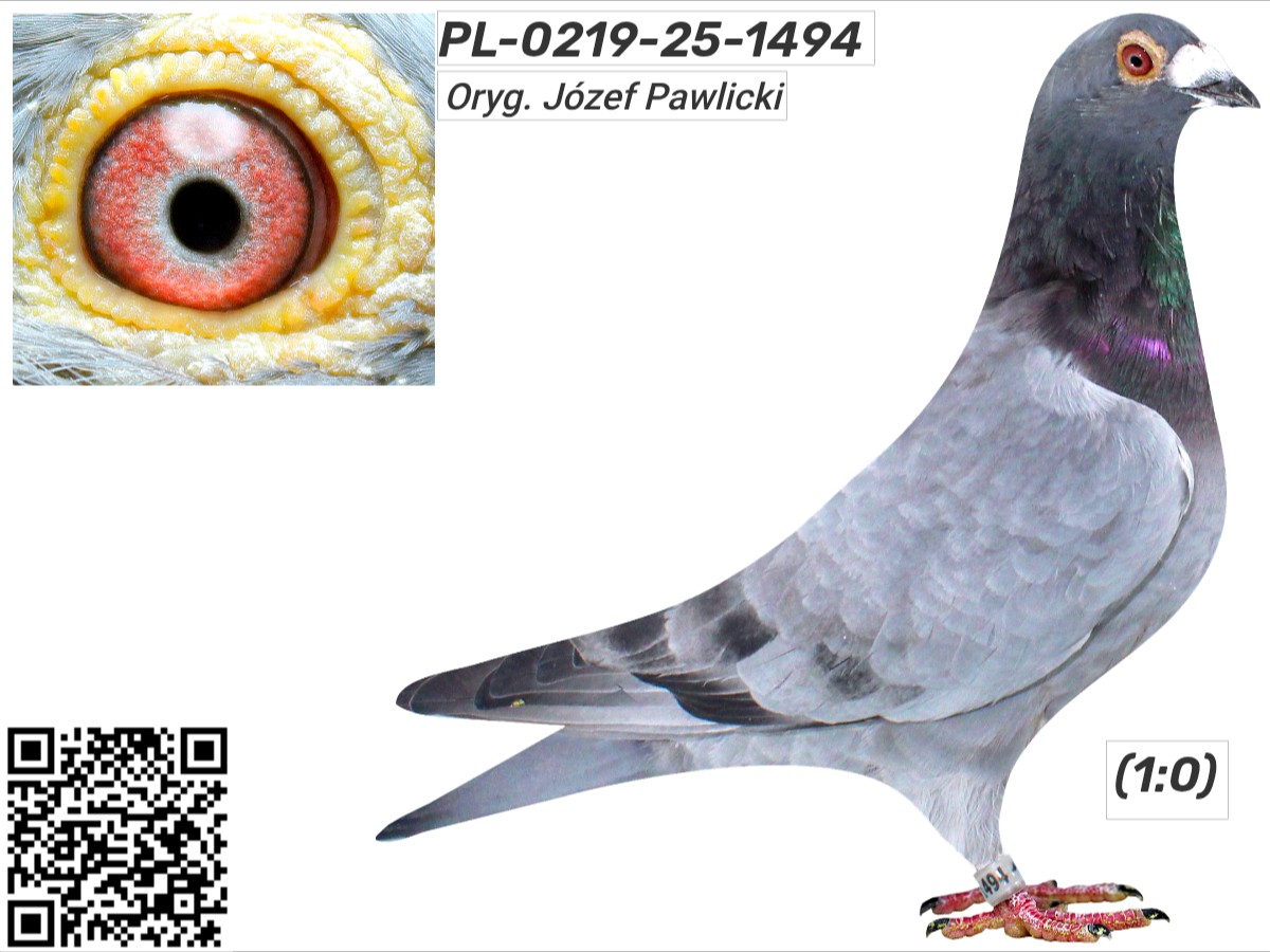 Oryg. Józef Pawlicki Gołąb lotowany u Katarzyny i Marka Stachowskich - 2 Przodownika Polski w kat. A Młode. Koszt transportu 150 zł po stronie kupującego