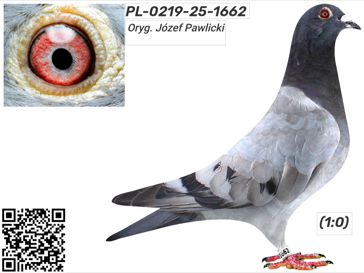Oryg. Józef Pawlicki Gołąb lotowany u Katarzyny i Marka Stachowskich - 2 Przodownika Polski w kat. A Młode. Koszt transportu 150 zł po stronie kupującego