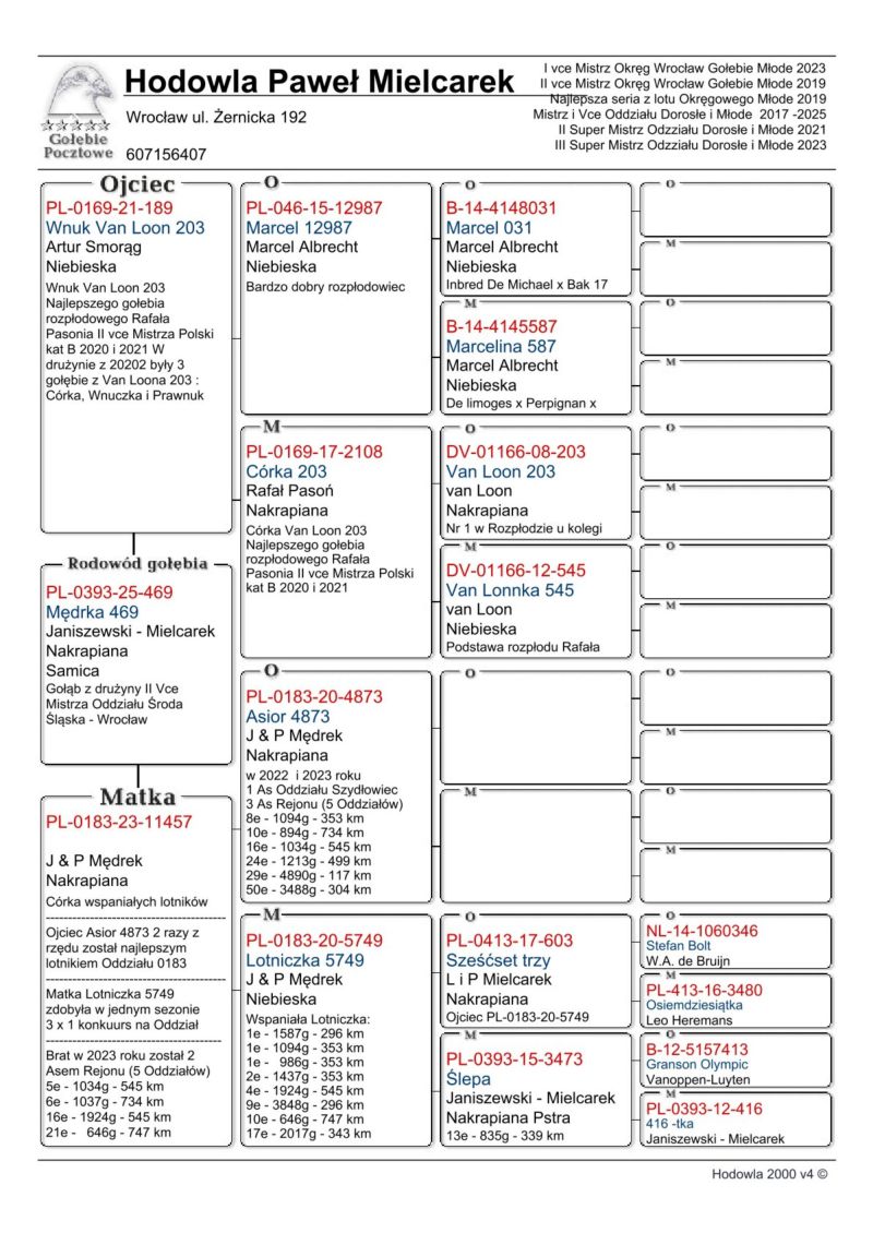 Spółka Janiszewski-Mielcarek powstała w 2017 roku od tamtej pory co roku meldujemy się na podium Oddziału Środa – Śląska Leśnica / Wrocław w różnych kategoriach. W międzyczasie zdobywamy 2 x vce Mistrzostwo Okręgu Wrocław gołębiami młodymi. Nasze gołębie wygrywają loty Oddziałowe oraz Rejonowe. Na listach Najlepszych lotników Okręgu Wrocław pojawiają się Nasze gołębie!