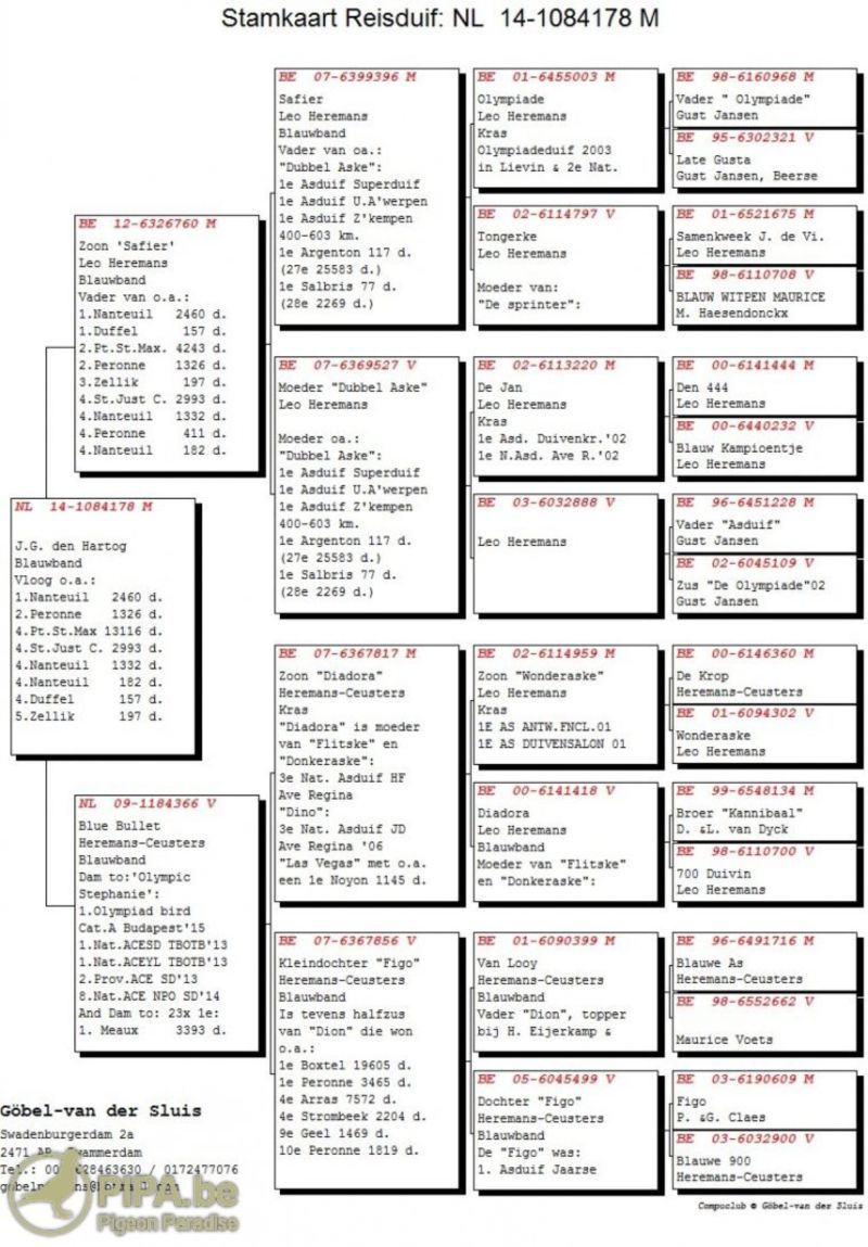 Nasza hodowla została oparta na gołębiach Leo Heremansa, Andreas Drapa, Gaby Vandanabeele, , Wa de Bruijne i przede wszystkim Wojciech Liebner (Gołębie z rodziny Braci Janssen)