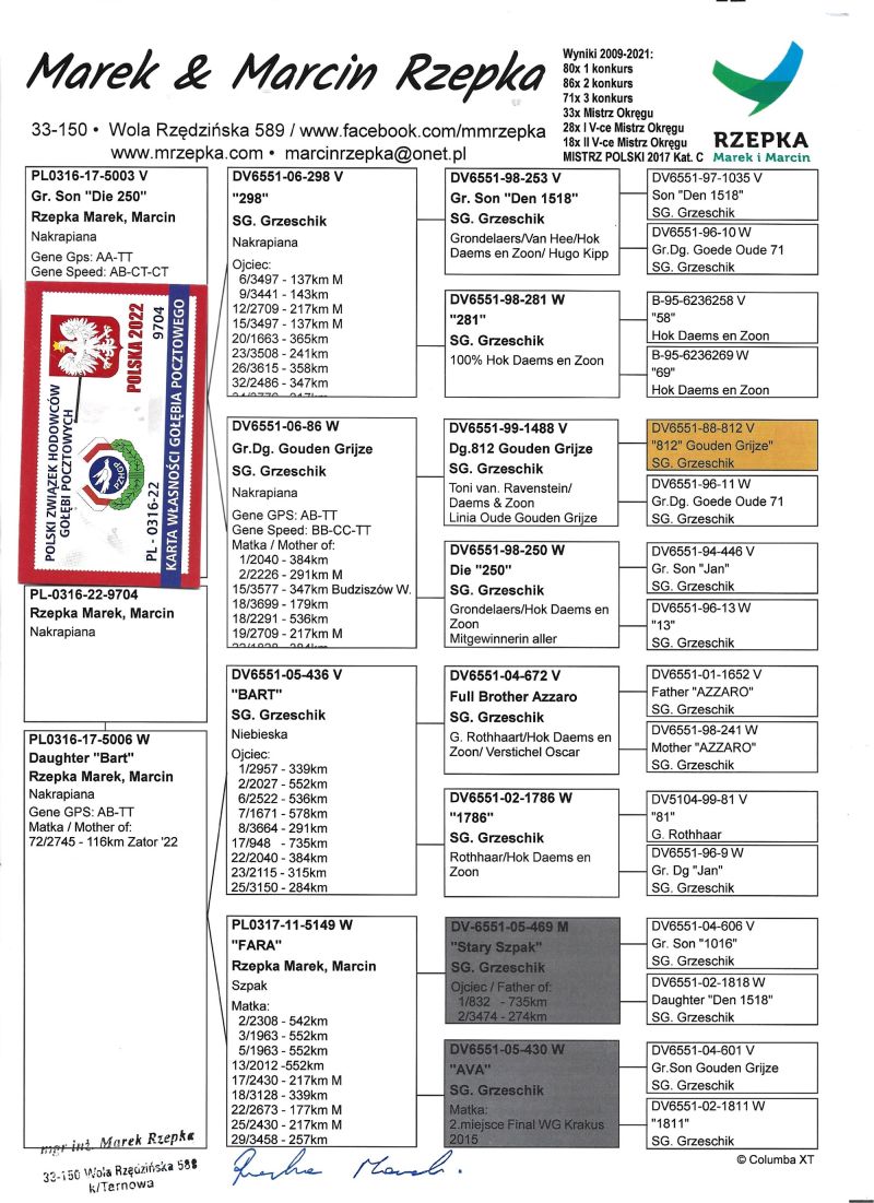 Oryginalny gołąb z hodowli M. i M. Rzepka. Szczegóły pochodzenia w rodowodzie. Więcej informacji pod nr tel.: 665-031-548 Możliwa wysyłka-kurier 150zł