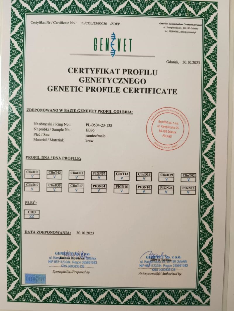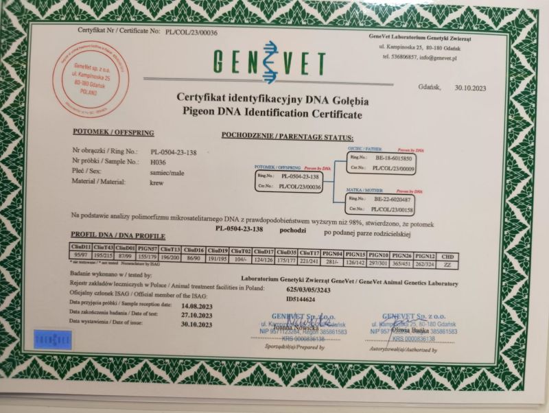 Oryginalny gołąb z hodowli K.Kowara Szczegóły pochodzenia w rodowodzie. Więcej informacji pod nr tel.: 665-031-548 Możliwa wysyłka-kurier 150zł