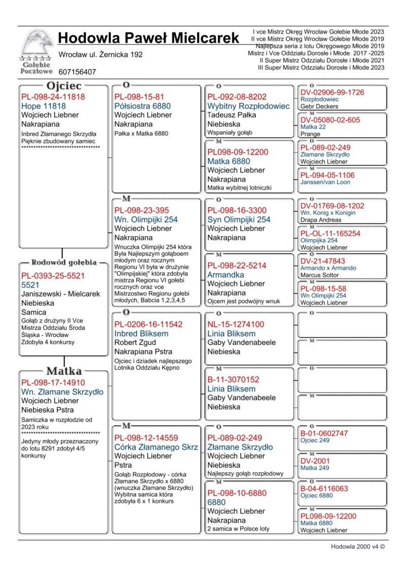 Szczegóły proponowanych gołębi znajdziecie w rodowodzie oraz pod numerem 607156407 o telefony proszę po godzinie 16ej.