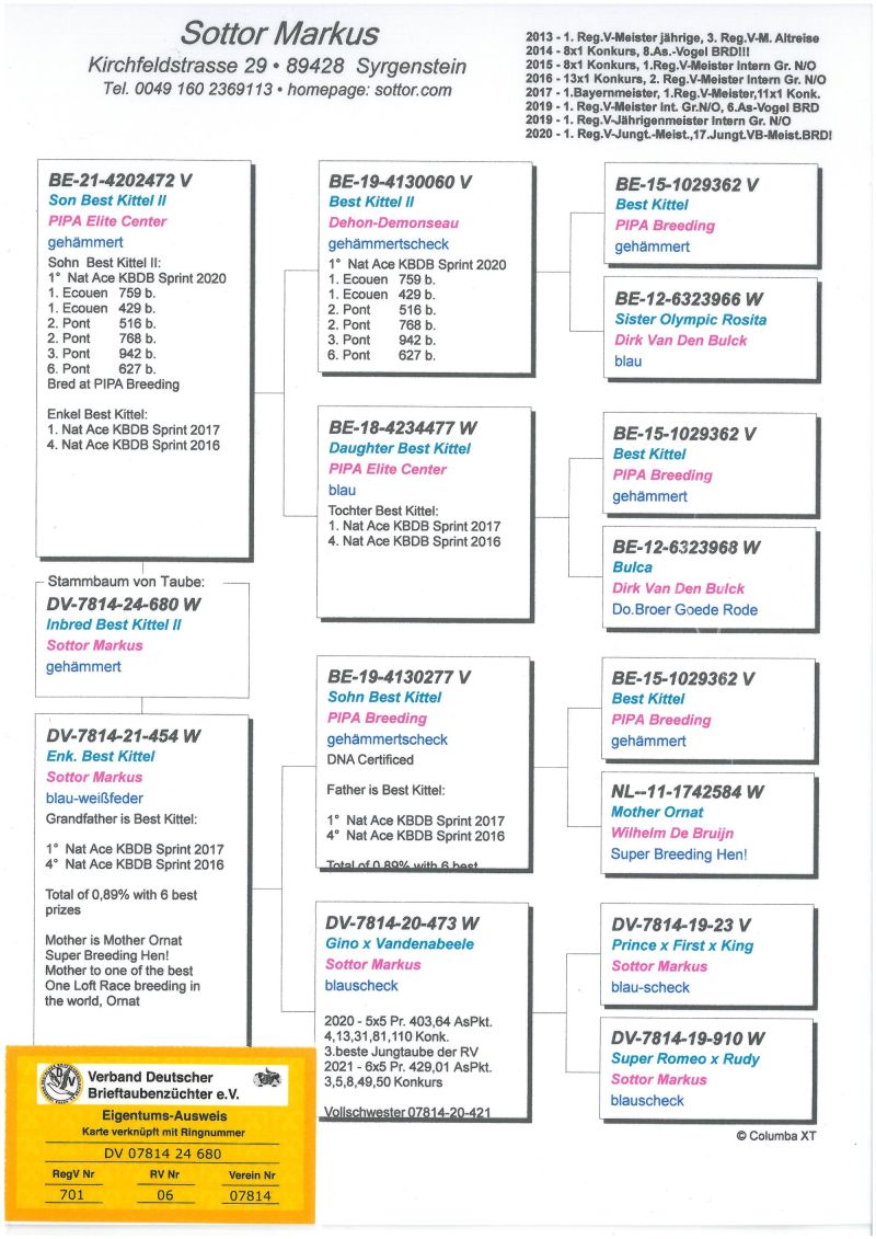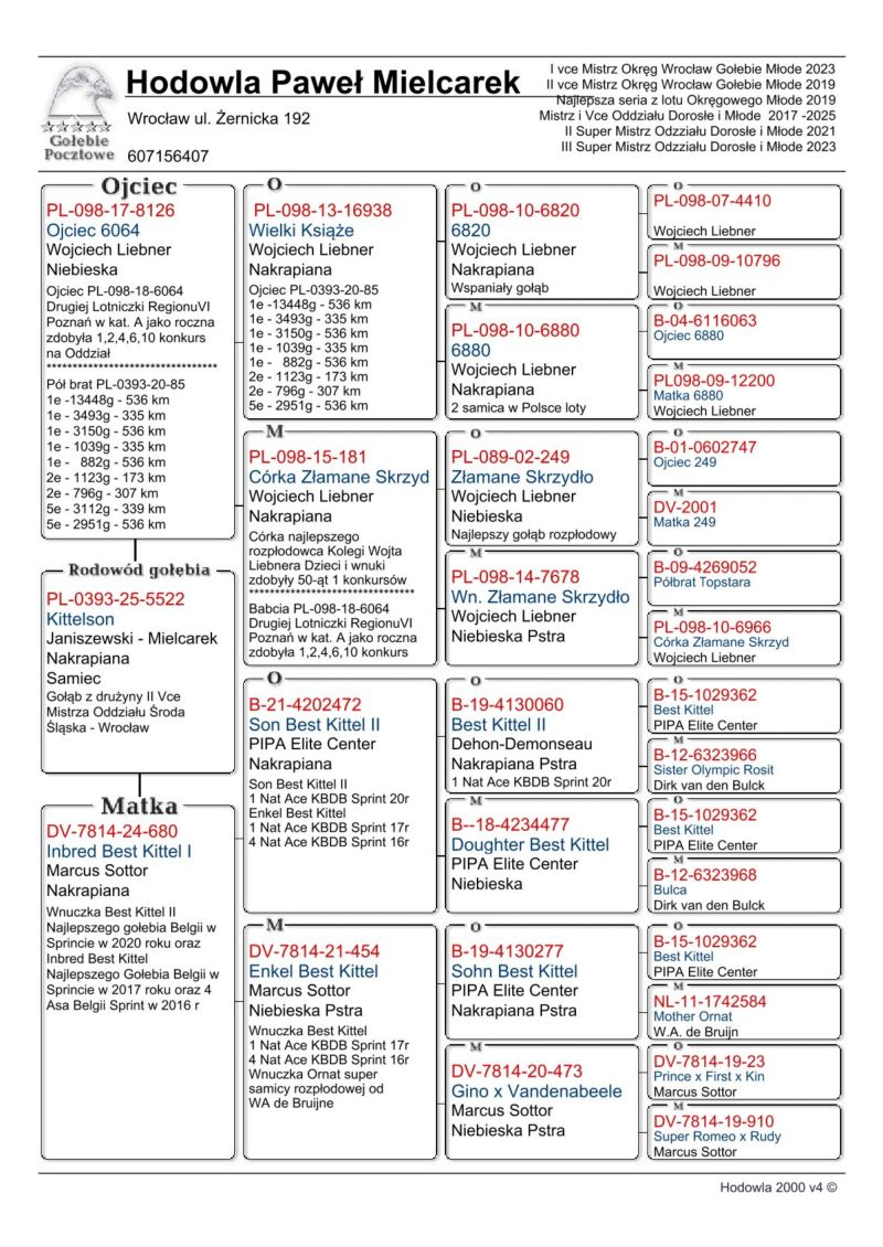Nasza hodowla została oparta na gołębiach Leo Heremansa, Andreas Drapa, Gaby Vandanabeele, , Wa de Bruijne i przede wszystkim Wojciech Liebner (Gołębie z rodziny Braci Janssen)