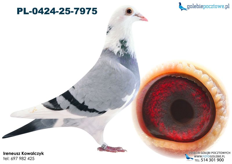 Gołąb z hodowli Ireneusz Kowalczyk. Informację o gołębiu dostępne w rodowodzie. Więcej informacji pod numerem telefonu: 697-982-425. Wysyłka po stronie kupującego