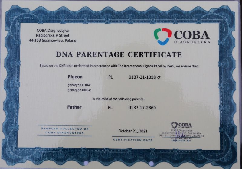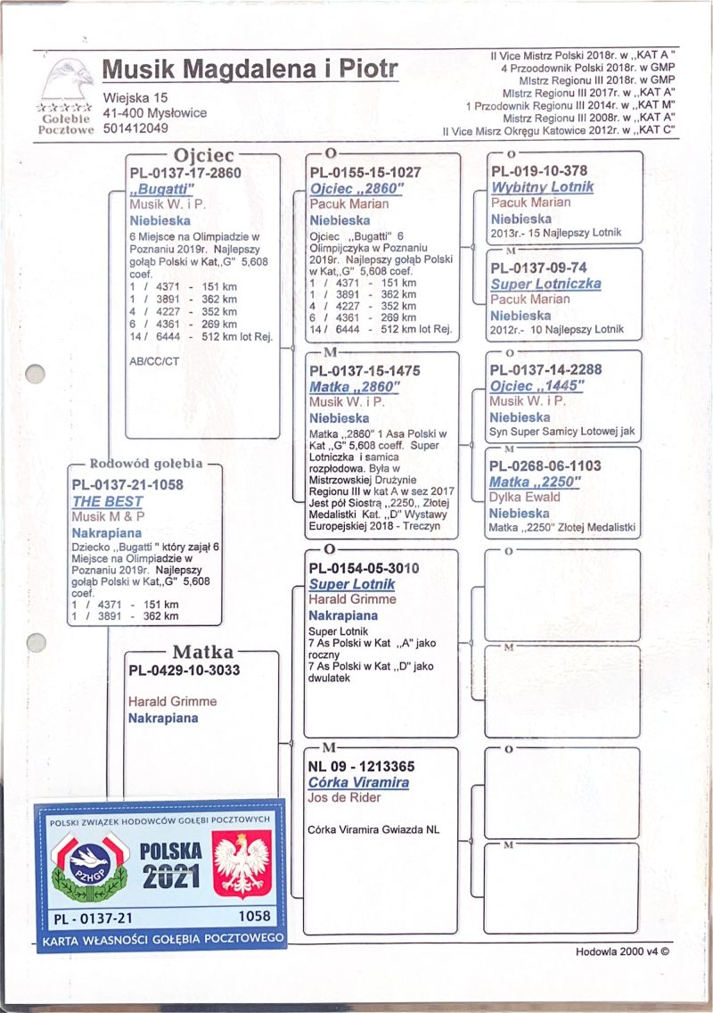 Oryginalny gołąb z hodowli Musik Magdalena i Piotr. Więcej informacji w rodowodzie oraz pod numerem telefonu: 502 785 086