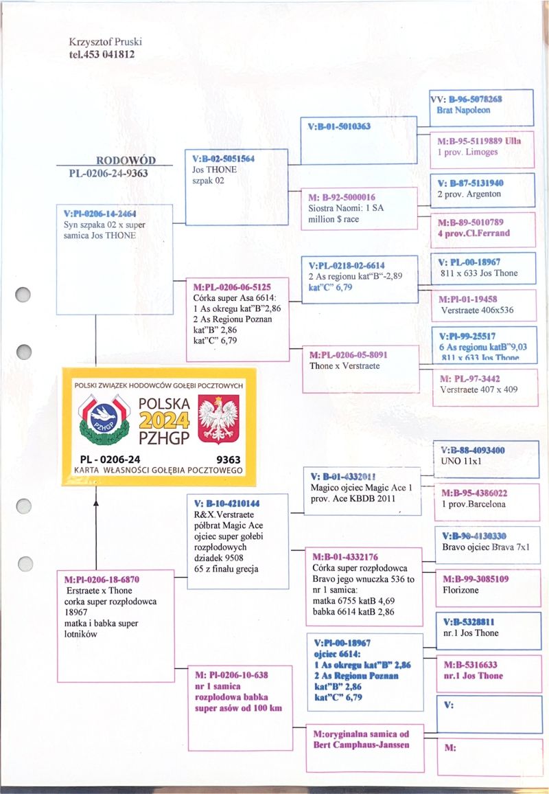 Oryginalny gołąb z hodowli Krzysztof Pruski. Więcej informacji w rodowodzie oraz pod numerem telefonu: 502 785 086