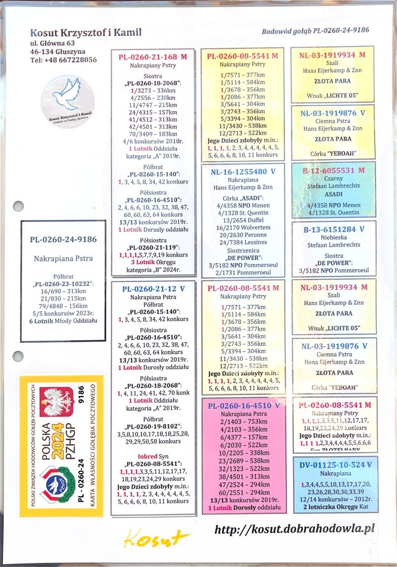 Oryginalny gołąb z hodowli Kosut Krzysztof i Kamil. Więcej informacji w rodowodzie oraz pod numerem telefonu: 502 785 086