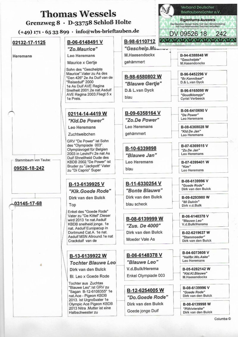 Z POWODU ZMIANY LOKALIZACJI GOŁĘBNIKA LIKWIDACJA GOŁĘBI RAZPŁODOWYCH.SAMICZKA T.WESSELS LINIA BLAUWE LEO-LINIA DE POWER LINIA SUPER LOTNIKÓW.MŁODE Z GOŁĘBNIKA ROZPŁODOWEGO WYWALCZYŁY W 2023/24/25 MISTRZ SEKCJI,W 2023 II PRZODOWNIK ODDZIAŁU,W 2024- I V-CE MISTRZ ODDZIAŁU,2025-I V-CE MISTRZ ODDZIAŁU.W 2024 II PRZODOWNIK OKRĘGU, 3 i 9 nagroda w kat F ZA STANDARTD NA WYSTAWIE OGÓLNOPOLSKIEJ.KOSZT WYSYŁKI POKRYWA KUPUJĄCY,PO WYGRANIU WPŁATA NA KONTO.POLECAM DO DALSZEJ HODOWLI