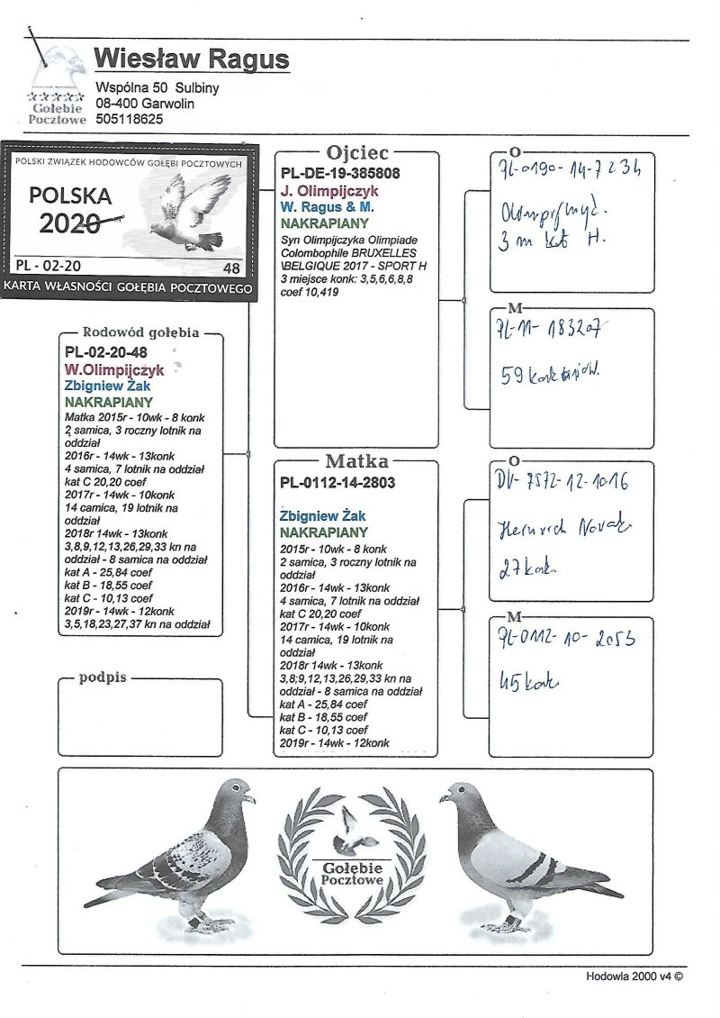 Z POWODU ZMIANY LOKALIZACJI GOŁĘBNIKA LIKWIDACJA GOŁĘBI RAZPŁODOWYCH.SAMICZKA WIESŁAW ŻAK LINIA SUPER LOTNIKÓW mi.7234 OLIMPIJCZYK KAT H LINIA SUPER LOTNIKÓW.MŁODE Z GOŁĘBNIKA ROZPŁODOWEGO WYWALCZYŁY W 2023/24/25 MISTRZ SEKCJI,W 2023 II PRZODOWNIK ODDZIAŁU,W 2024- I V-CE MISTRZ ODDZIAŁU,2025-I V-CE MISTRZ ODDZIAŁU.W 2024 II PRZODOWNIK OKRĘGU, 3 i 9 nagroda w kat F ZA STANDARTD NA WYSTAWIE OGÓLNOPOLSKIEJ.KOSZT WYSYŁKI POKRYWA KUPUJĄCY,PO WYGRANIU WPŁATA NA KONTO.POLECAM DO DALSZEJ HODOWLI