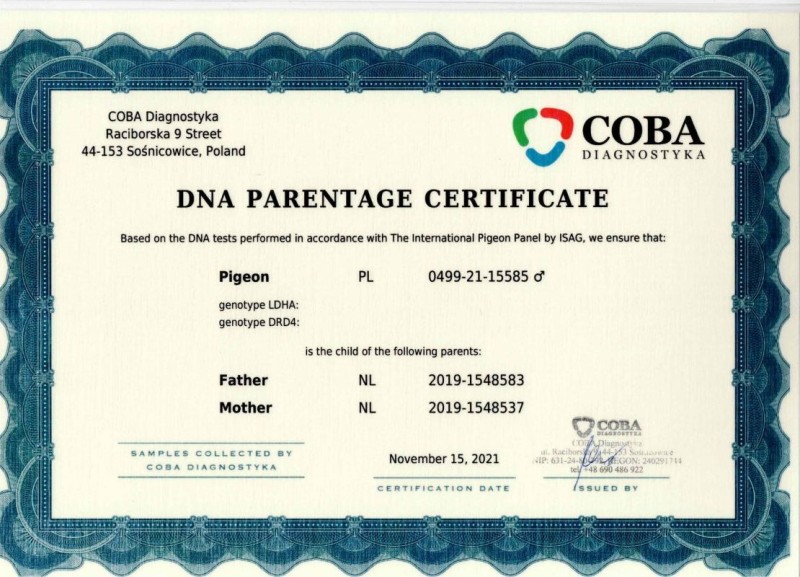 PL-0499-21-15585 100% Klinkenberg cert.DNA
