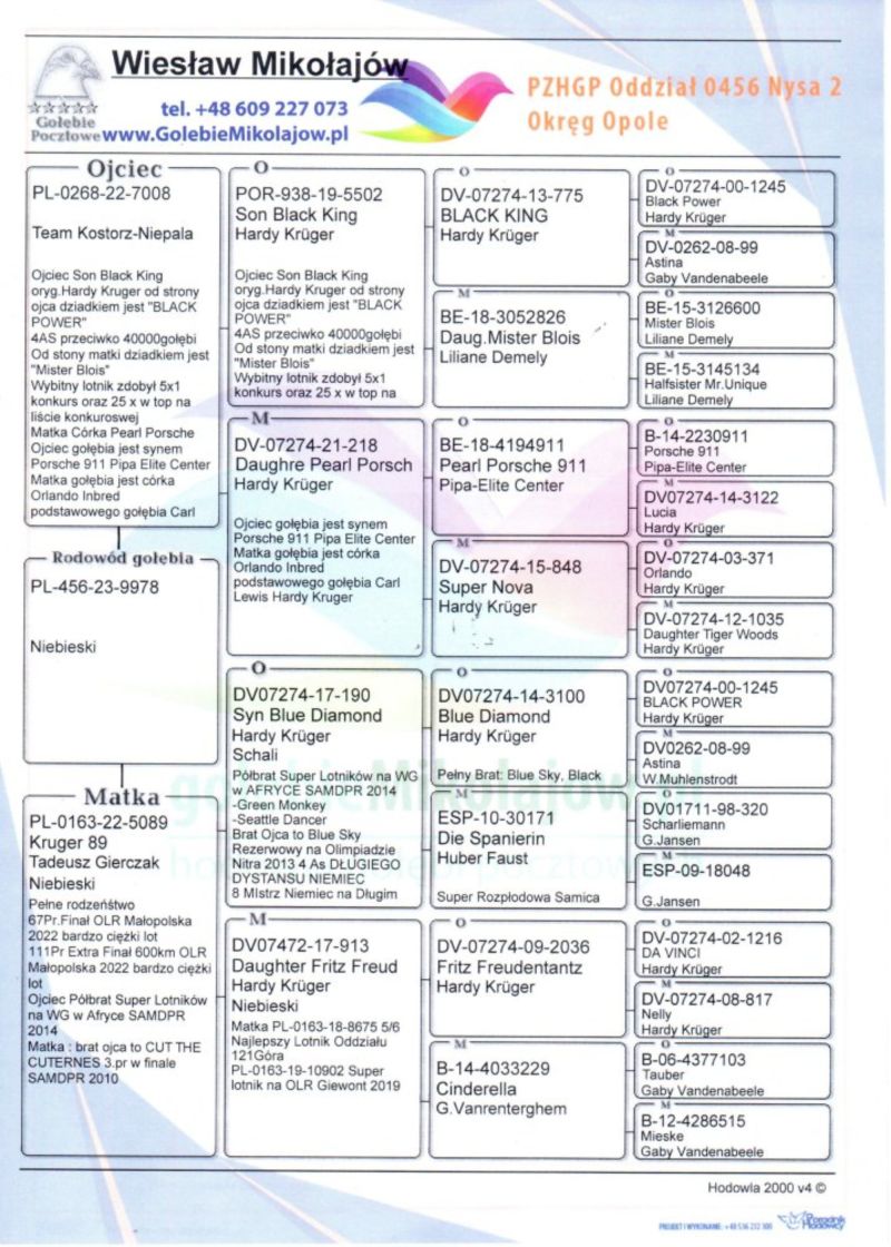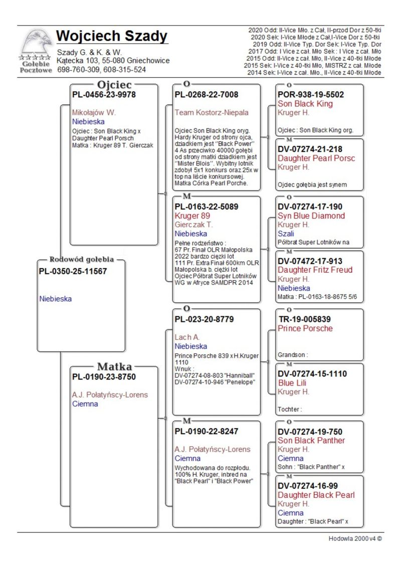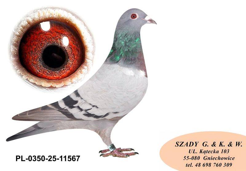 Witam. Gołąb pochodzi z hodowli Szady GKW. Szczegóły pochodzenia w rodowodzie. Zaszczepiony 16.09.2025 szczepionką RP VACC. Płatność za gołębia - przelew na konto. Transport będę organizował po zakończeniu wszystkich aukcji w połowie grudnia. Koszt transportu indywidualnie w zależności od odległości i ilości gołębi. Możliwa trasa 15.12.2025 - Wrocław - Gliwice - Żory - Jastrzębie Zdrój - Ostrawa. Możliwe trasa 20.12 - Wrocław - Poznań - Konin - Garwolin - Rawa Mazowiecka - Piotrków Trybunalski - Bełchatów - Wieluń - Wrocław. Co tydzień / Wrocław - Zgorzelec oraz Wrocław - Olszyna. Prawdopodobnie samczyk. Więcej informacji pod nr tel. : 698 760 309.