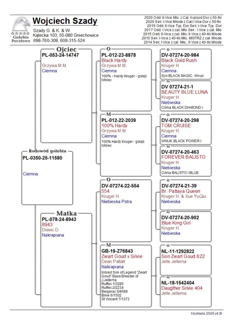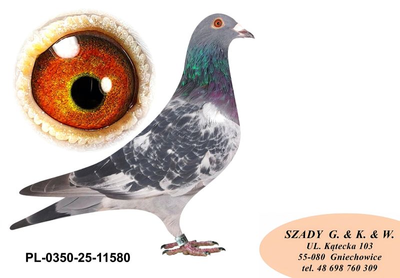Witam. Gołąb pochodzi z hodowli Szady GKW. Szczegóły pochodzenia w rodowodzie. Zaszczepiony 16.09.2025 szczepionką RP VACC. Płatność za gołębia - przelew na konto. Transport będę organizował po zakończeniu wszystkich aukcji w połowie grudnia. Koszt transportu indywidualnie w zależności od odległości i ilości gołębi. Możliwa trasa 15.12.2025 - Wrocław - Gliwice - Żory - Jastrzębie Zdrój - Ostrawa. Możliwe trasa 20.12 - Wrocław - Poznań - Konin - Garwolin - Rawa Mazowiecka - Piotrków Trybunalski - Bełchatów - Wieluń - Wrocław. Co tydzień / Wrocław - Zgorzelec oraz Wrocław - Olszyna. Prawdopodobnie samczyk. Więcej informacji pod nr tel. : 698 760 309.