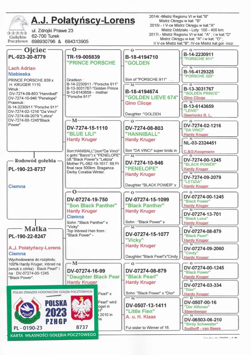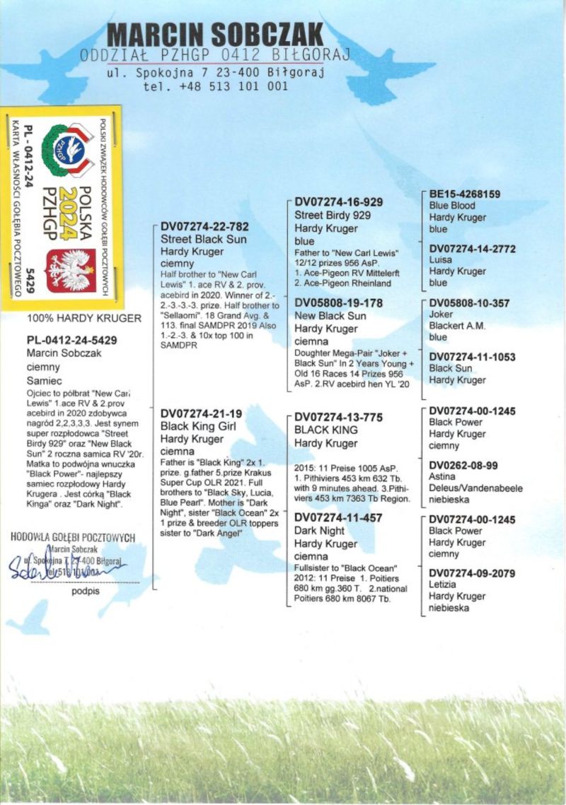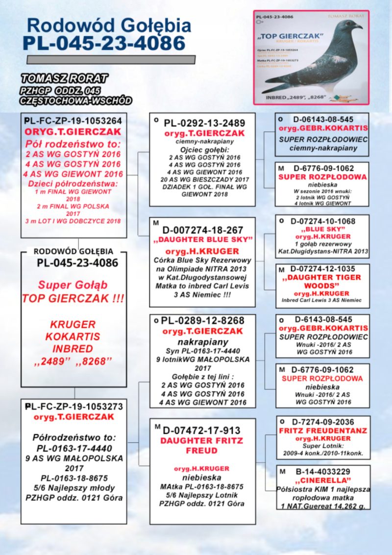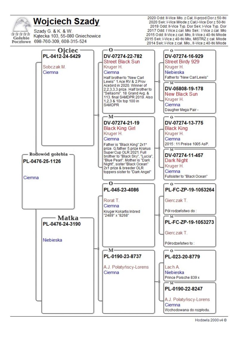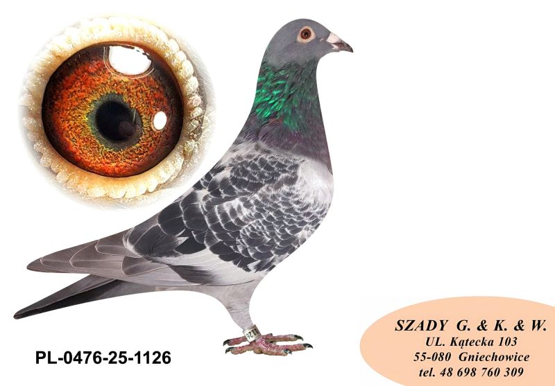 Witam. Gołąb pochodzi z hodowli Szady GKW. Szczegóły pochodzenia w rodowodzie. Zaszczepiony 16.09.2025 szczepionką RP VACC. Płatność za gołębia - przelew na konto. Transport będę organizował po zakończeniu wszystkich aukcji w połowie grudnia. Koszt transportu indywidualnie w zależności od odległości i ilości gołębi. Możliwa trasa 15.12.2025 - Wrocław - Gliwice - Żory - Jastrzębie Zdrój - Ostrawa. Możliwe trasa 20.12 - Wrocław - Poznań - Konin - Garwolin - Rawa Mazowiecka - Piotrków Trybunalski - Bełchatów - Wieluń - Wrocław. Co tydzień / Wrocław - Zgorzelec oraz Wrocław - Olszyna. Prawdopodobnie samczyk. Więcej informacji pod nr tel. : 698 760 309.