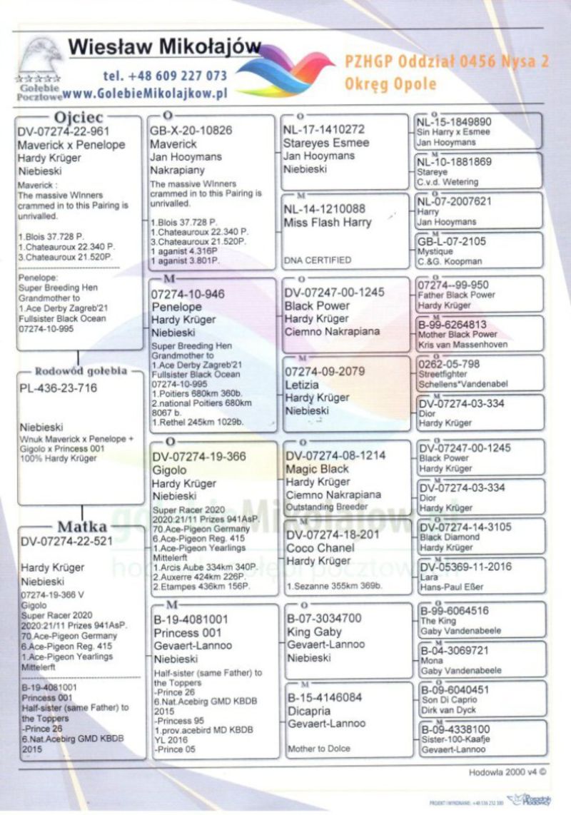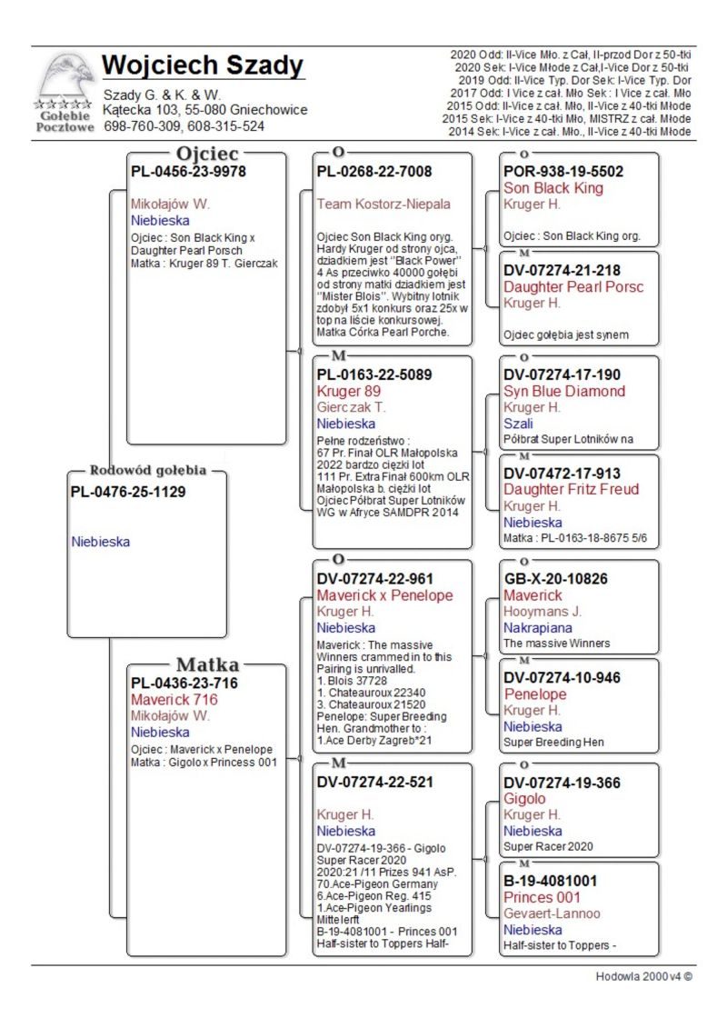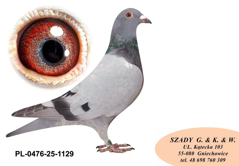 Witam. Gołąb pochodzi z hodowli Szady GKW. Szczegóły pochodzenia w rodowodzie. Zaszczepiony 16.09.2025 szczepionką RP VACC. Płatność za gołębia - przelew na konto. Transport będę organizował po zakończeniu wszystkich aukcji w połowie grudnia. Koszt transportu indywidualnie w zależności od odległości i ilości gołębi. Możliwa trasa 15.12.2025 - Wrocław - Gliwice - Żory - Jastrzębie Zdrój - Ostrawa. Możliwe trasa 20.12 - Wrocław - Poznań - Konin - Garwolin - Rawa Mazowiecka - Piotrków Trybunalski - Bełchatów - Wieluń - Wrocław. Co tydzień / Wrocław - Zgorzelec oraz Wrocław - Olszyna. Prawdopodobnie samica. Więcej informacji pod nr tel. : 698 760 309.