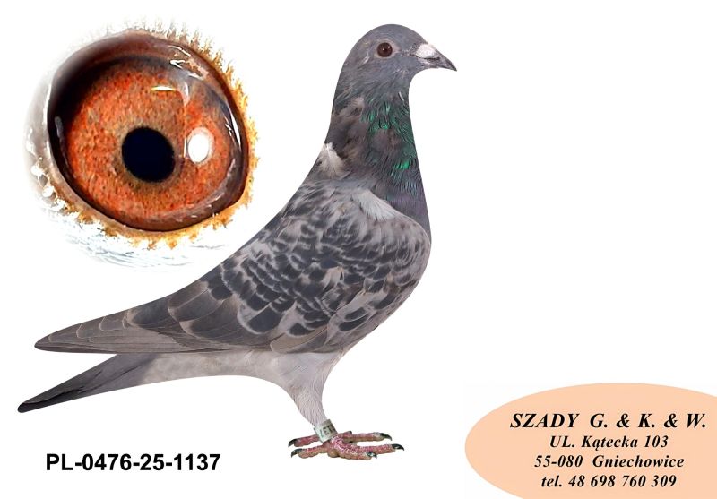 Witam. Gołąb pochodzi z hodowli Szady GKW. Szczegóły pochodzenia w rodowodzie. Zaszczepiony 16.09.2025 szczepionką RP VACC. Płatność za gołębia - przelew na konto. Transport będę organizował po zakończeniu wszystkich aukcji w połowie grudnia. Koszt transportu indywidualnie w zależności od odległości i ilości gołębi. Możliwa trasa 15.12.2025 - Wrocław - Gliwice - Żory - Jastrzębie Zdrój - Ostrawa. Możliwe trasa 20.12 - Wrocław - Poznań - Konin - Garwolin - Rawa Mazowiecka - Piotrków Trybunalski - Bełchatów - Wieluń - Wrocław. Co tydzień / Wrocław - Zgorzelec oraz Wrocław - Olszyna. Prawdopodobnie samica. Więcej informacji pod nr tel. : 698 760 309.