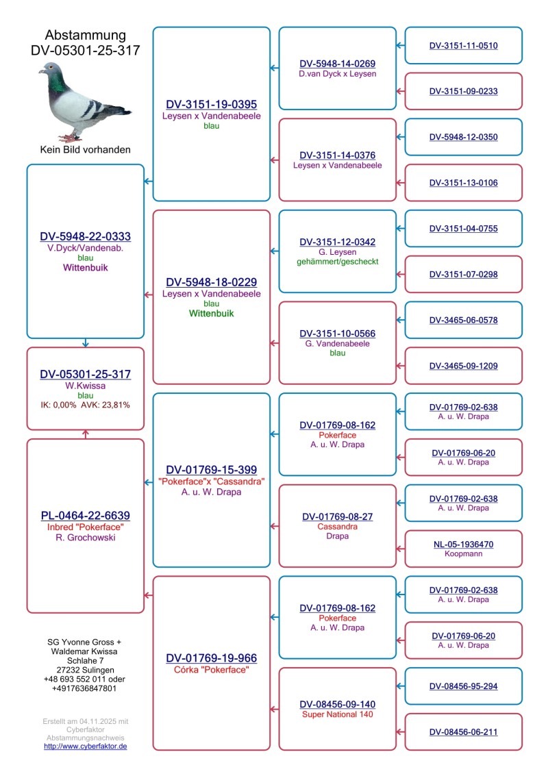 Oryginalny gołąb z hodowli Waldemar Kwissa. Fajne połączenie. Szczegóły pochodzenia w rodowodzie, karty własności będą dołączone do rodowodów. Więcej informacji pod nr tel.: 693552011. Koszt wysyłki od 1 do 4 szt 150 zł