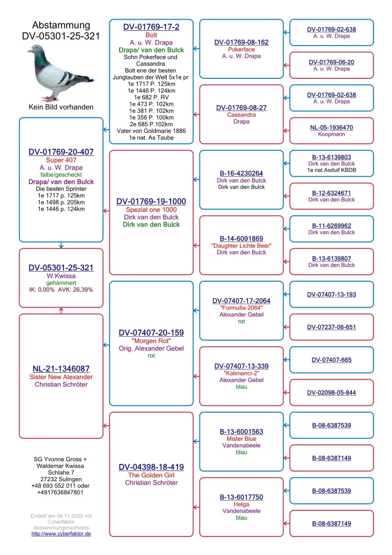 Oryginalny gołąb z hodowli Waldemar Kwissa. Fajne połączenie. Szczegóły pochodzenia w rodowodzie, karty własności będą dołączone do rodowodów. Więcej informacji pod nr tel.: 693552011. Koszt wysyłki od 1 do 4 szt 150 zł