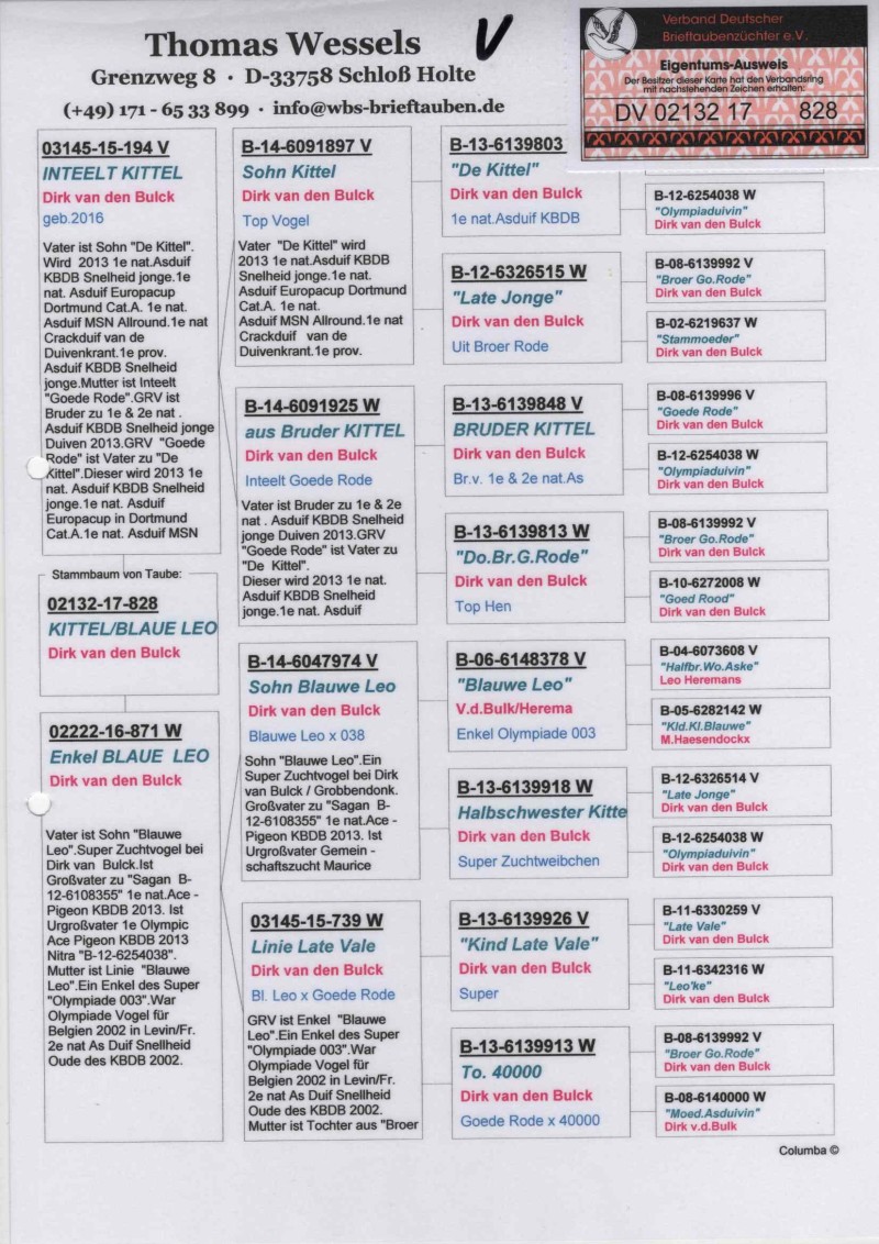 Oryginalny gołąb z hodowli Waldemar Kwissa. Fajne połączenie. Szczegóły pochodzenia w rodowodzie, karty własności będą dołączone do rodowodów. Więcej informacji pod nr tel.: 693552011. Koszt wysyłki od 1 do 4 szt 150 zł
