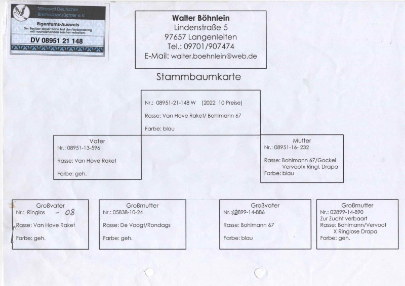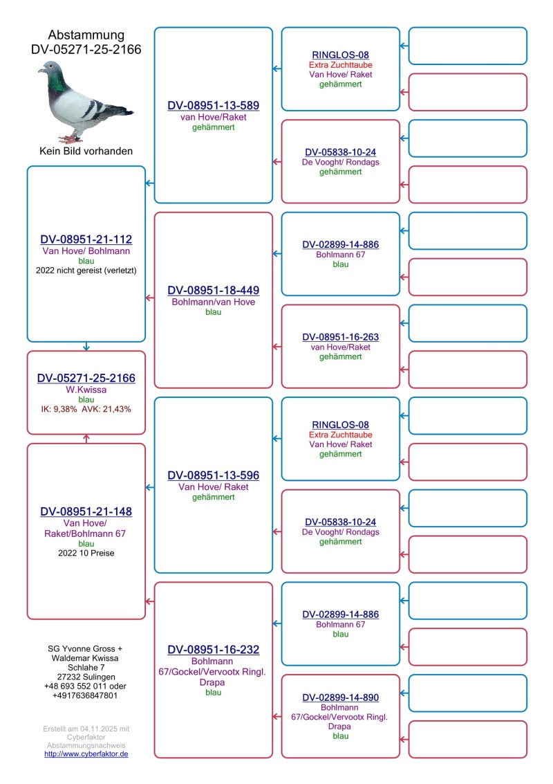 Oryginalny gołąb z hodowli Waldemar Kwissa. Fajne połączenie. Szczegóły pochodzenia w rodowodzie, karty własności będą dołączone do rodowodów. Więcej informacji pod nr tel.: 693552011. Koszt wysyłki od 1 do 4 szt 150 zł