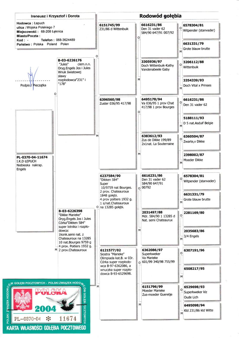Więcej informacji w rodowodzie oraz pod nr telefonu Grzegorz 663602297. zapewniam transport wszystkim kupionym gołębiom na moich aukcjach