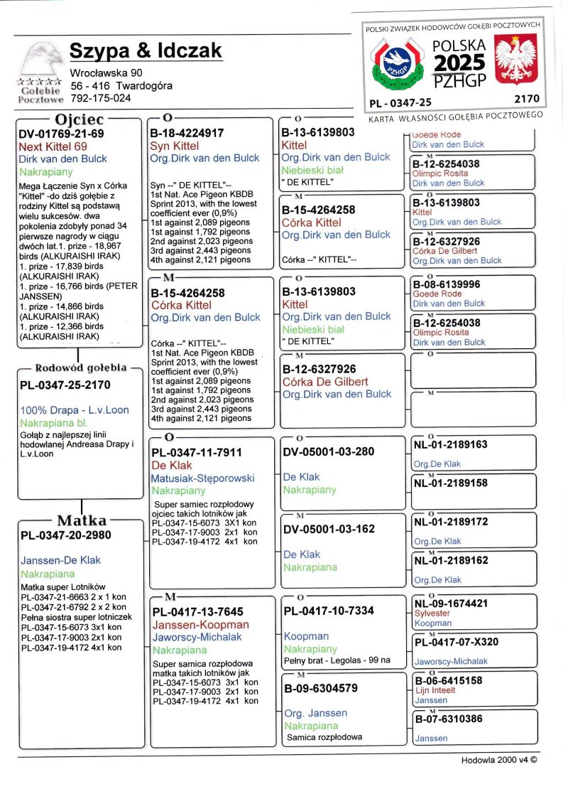 Profesjonalna hodowla z wieloletnim doświadczeniem, posiadająca w swoim stadzie materiał najwyższej światowej klasy. Więcej informacji w załączonych materiałach oraz pod nr tel. 792-175-024 Oferowany gołąb to prawdopodobnie SAMICA. Płeć pisana orientacyjnie Wysyłka 100 zł
