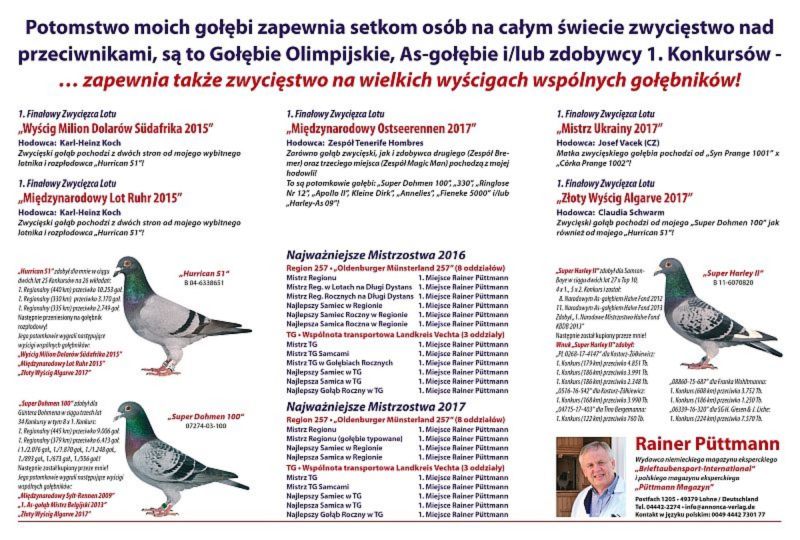 Więcej informacji w rodowodzie oraz pod nr telefonu Grzegorz 663602297. zapewniam transport wszystkim kupionym gołębiom na moich aukcjach