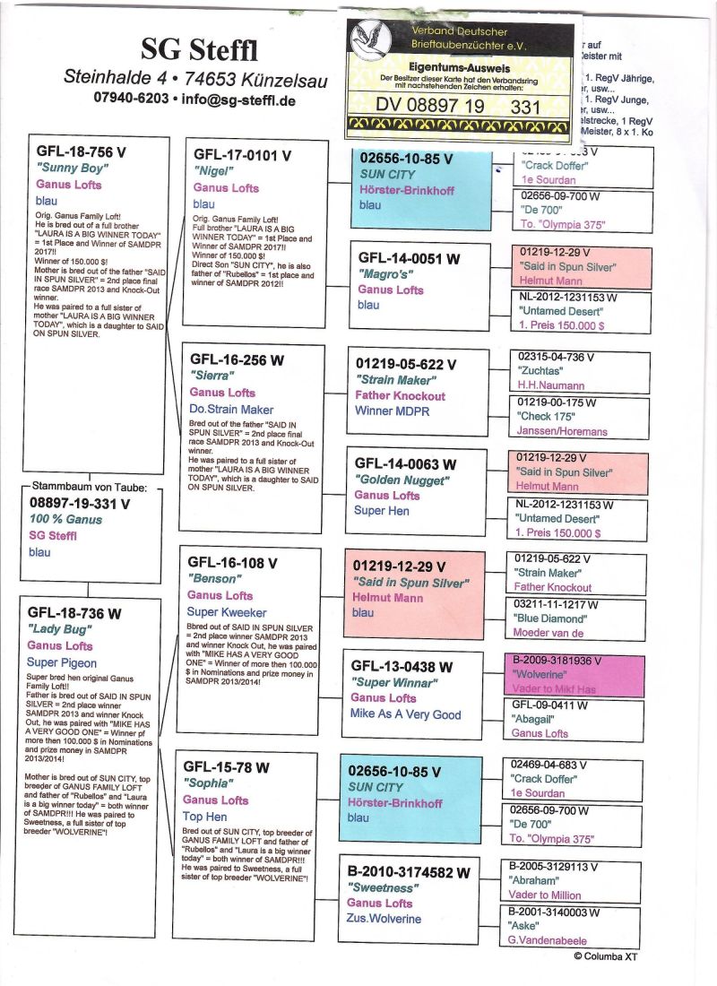Więcej informacji w rodowodzie oraz pod nr telefonu Grzegorz 663602297. zapewniam transport wszystkim kupionym gołębiom na moich aukcjach