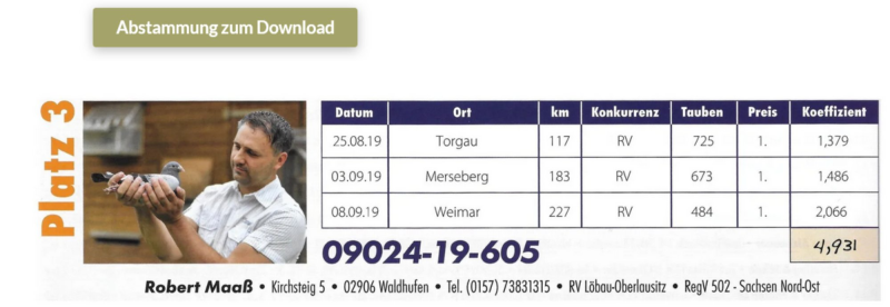 DV-09024-20-1178 córka Hattricka najlepszego gołębia rozpłodowego Roberta